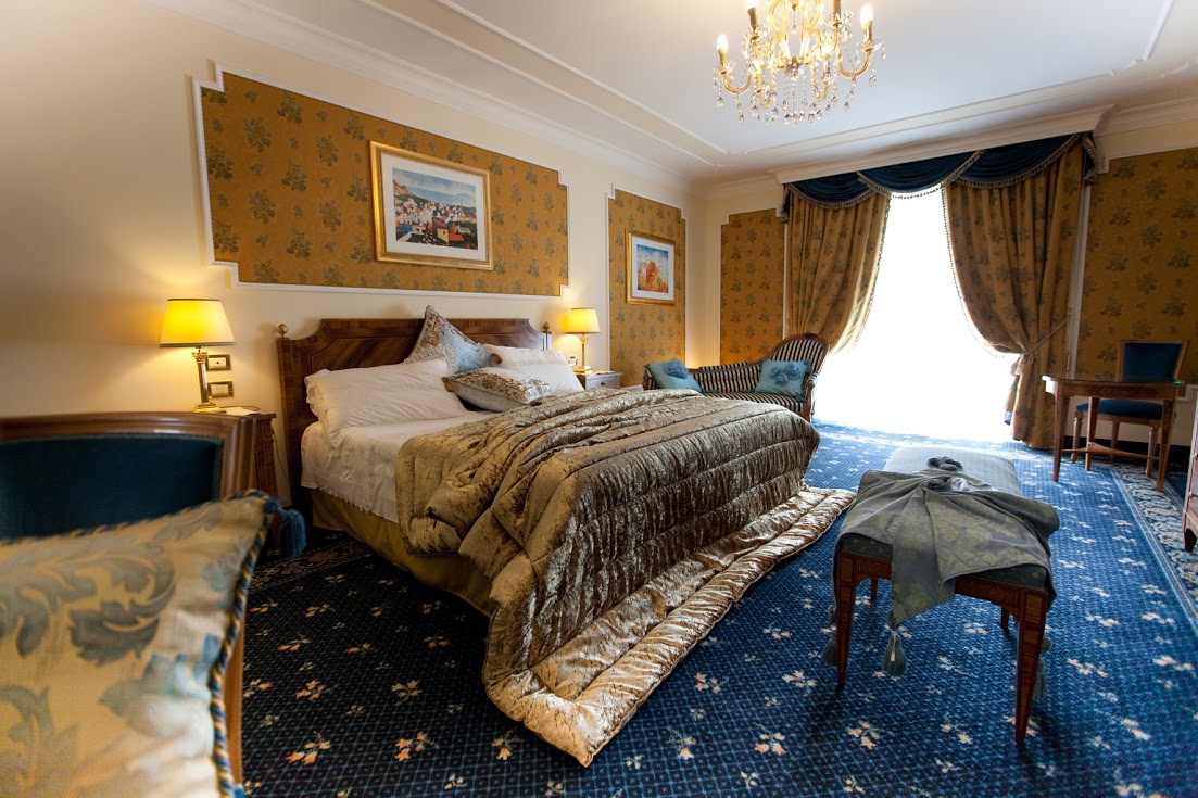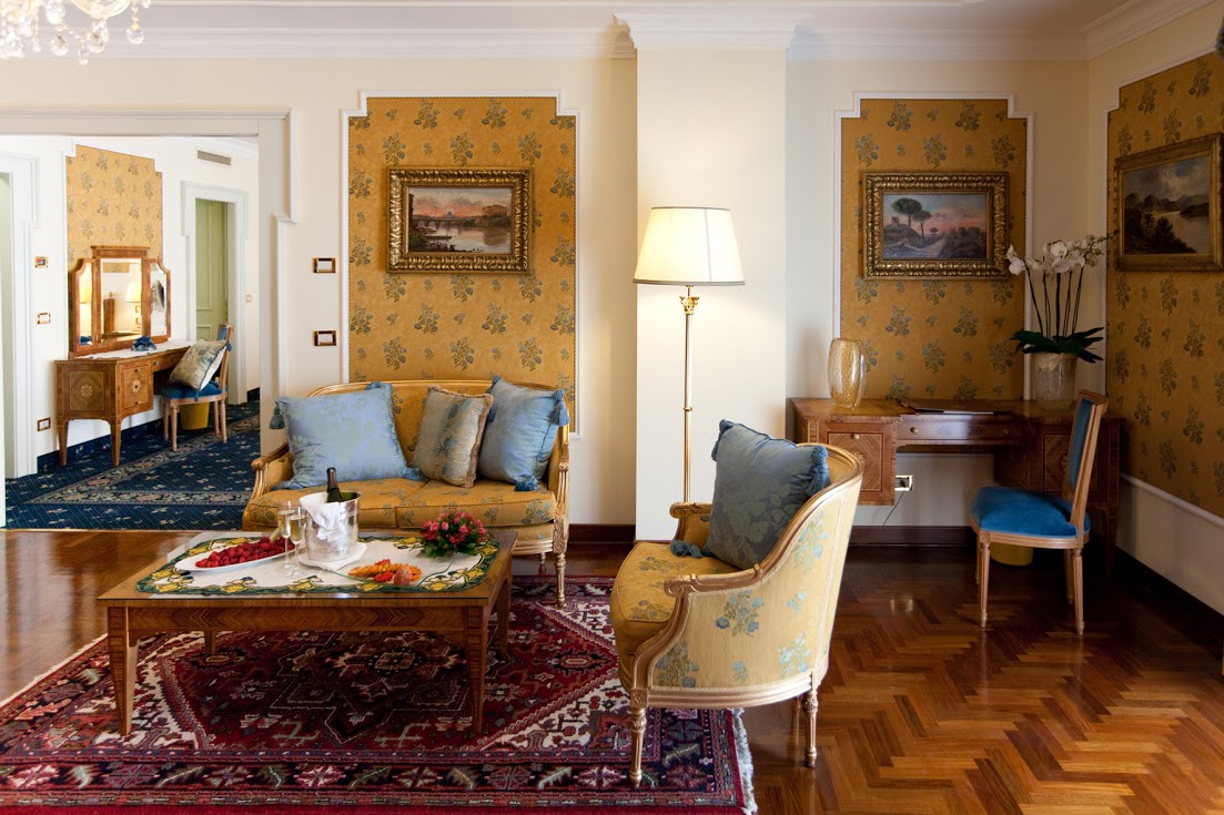 Изысканные сьюты общей площадью 60 кв м, интерьер в стиле Людовика XVI, просторные ванные комнаты, облицованные итальянским мрамором, с ванной и душевой кабиной.