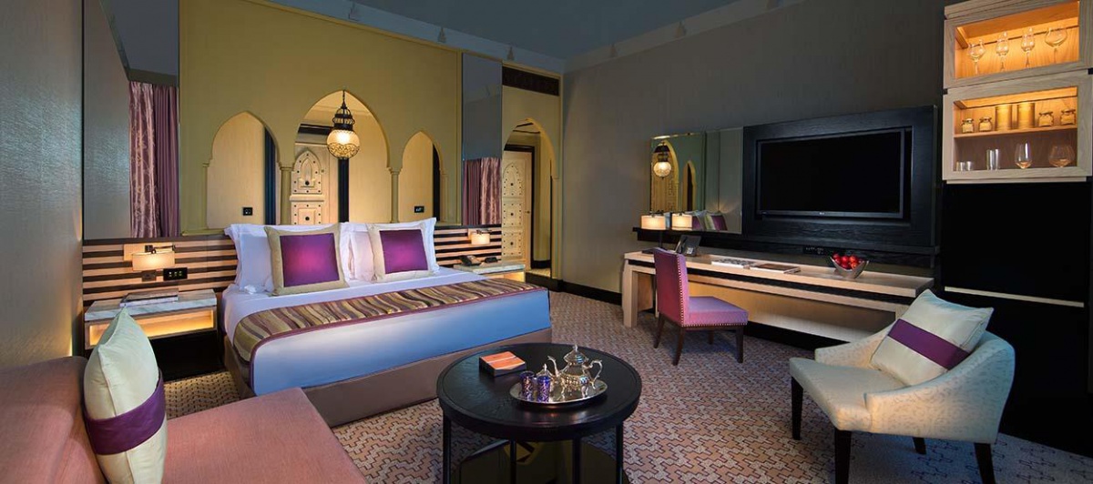 Атмосфера роскоши и изысканности царит во всех номерах отеля. Здесь гармонично соединяются арабский колорит и современный стиль. Просторные и светлые номера наполнены традиционными элементами декора: резные узоры на антикварной мебели и арках, текстиль с оригинальным орнаментом, мозаика и арабески.