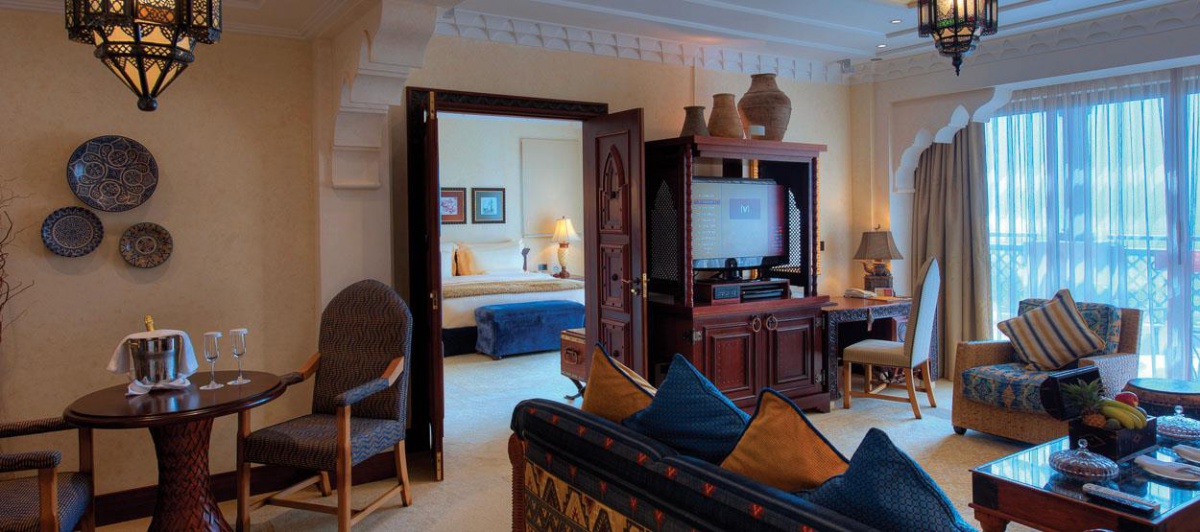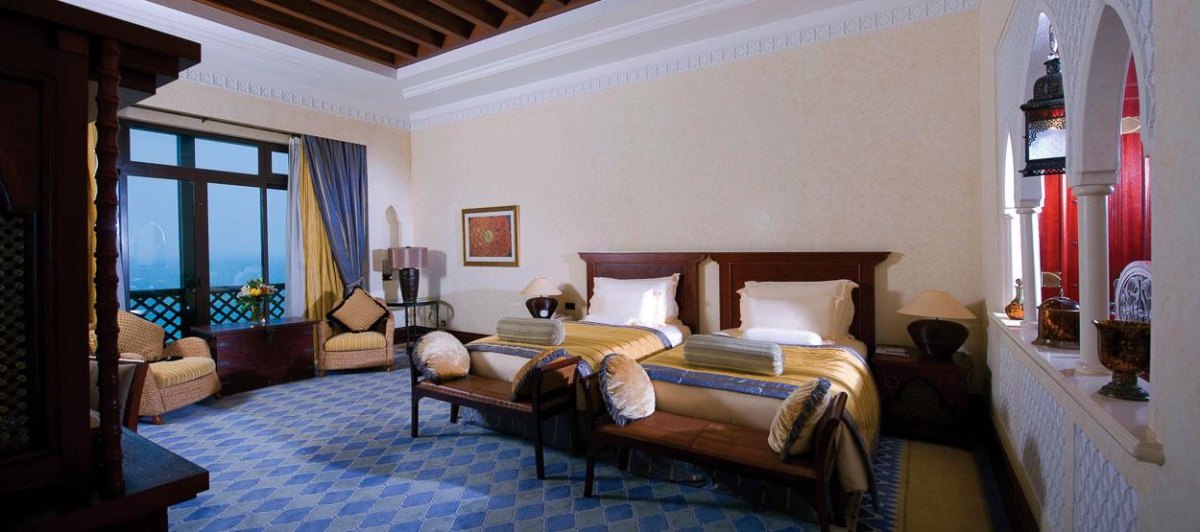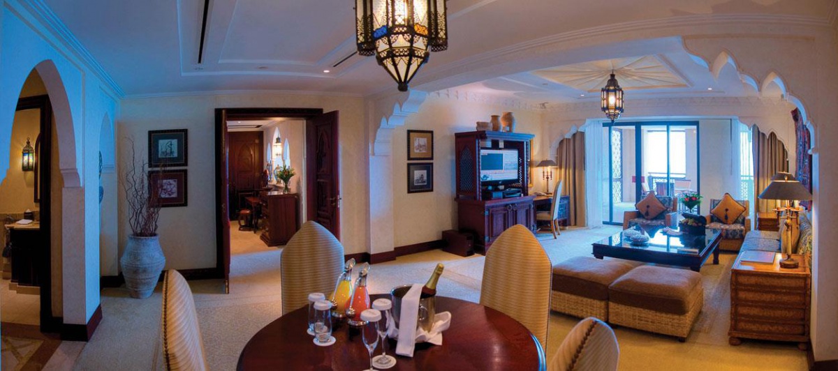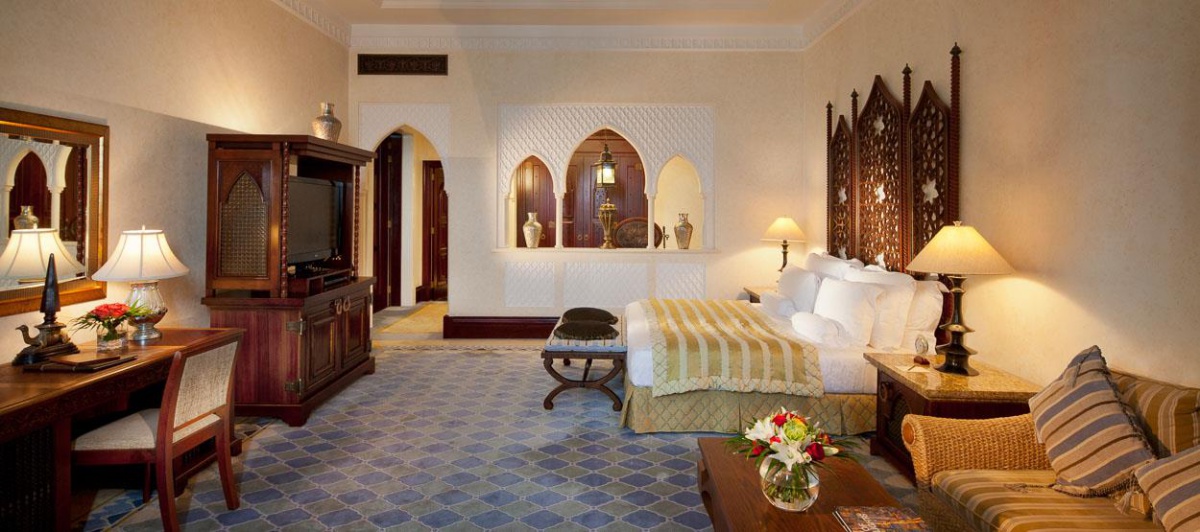 Площадь 292 шикарных номеров и люксов может достигать 268 кв.м. Интерьер всех номеров выдержан в традиционном аравийском стиле с присущими ему орнаментами, арабесками и резными арками. Во всех апартаментах царит атмосфера роскоши и элегантности.