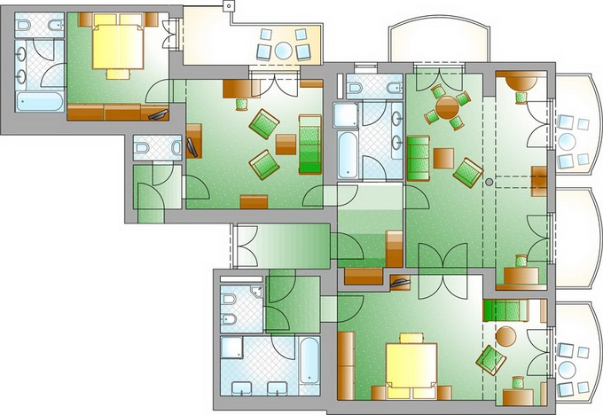 President Suite, CAT J: 143 м2, окна на юго-запад. В номере 2 спальни, гостиная, салон, рабочее место, 3 ванных комнат, 5 балконов.