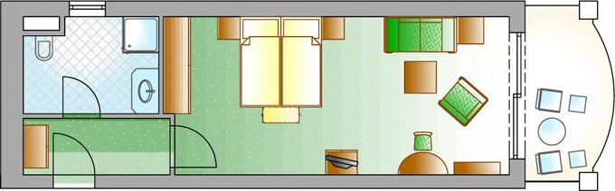 Studio De Luxe, CAT H: 51 м2, окна на юго-запад. В номере спальня c двуспальной или отдельными кроватями, гостиная зона, рабочее место, ванная комната, 3 балкона.