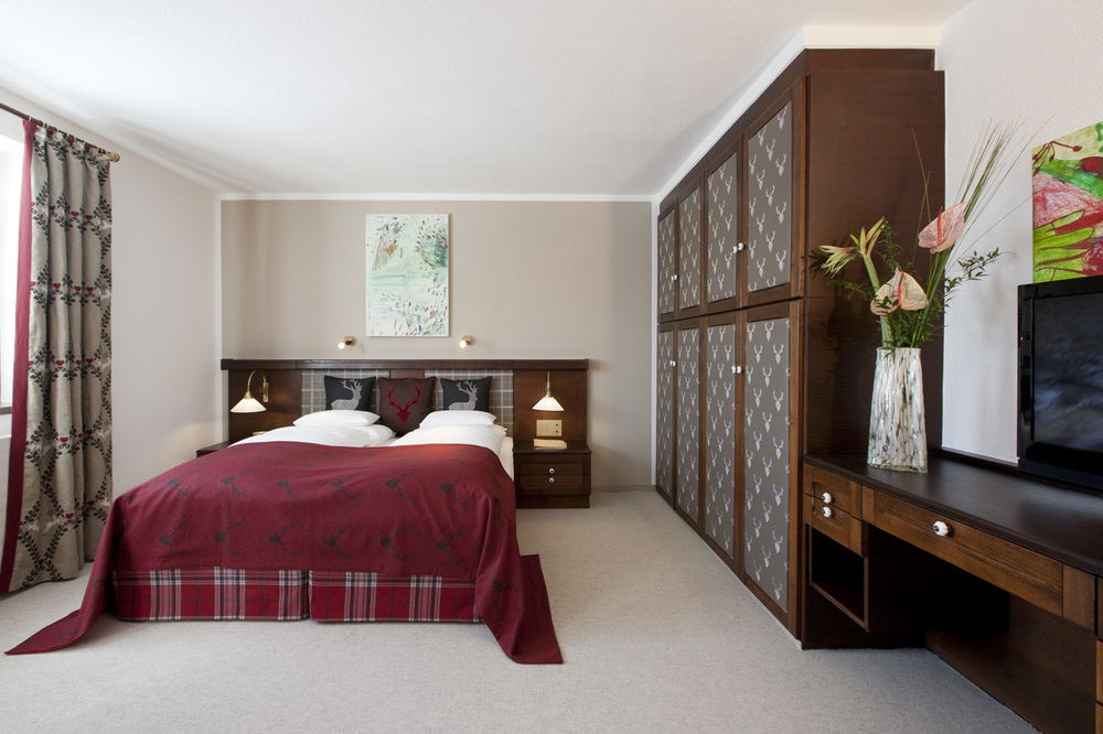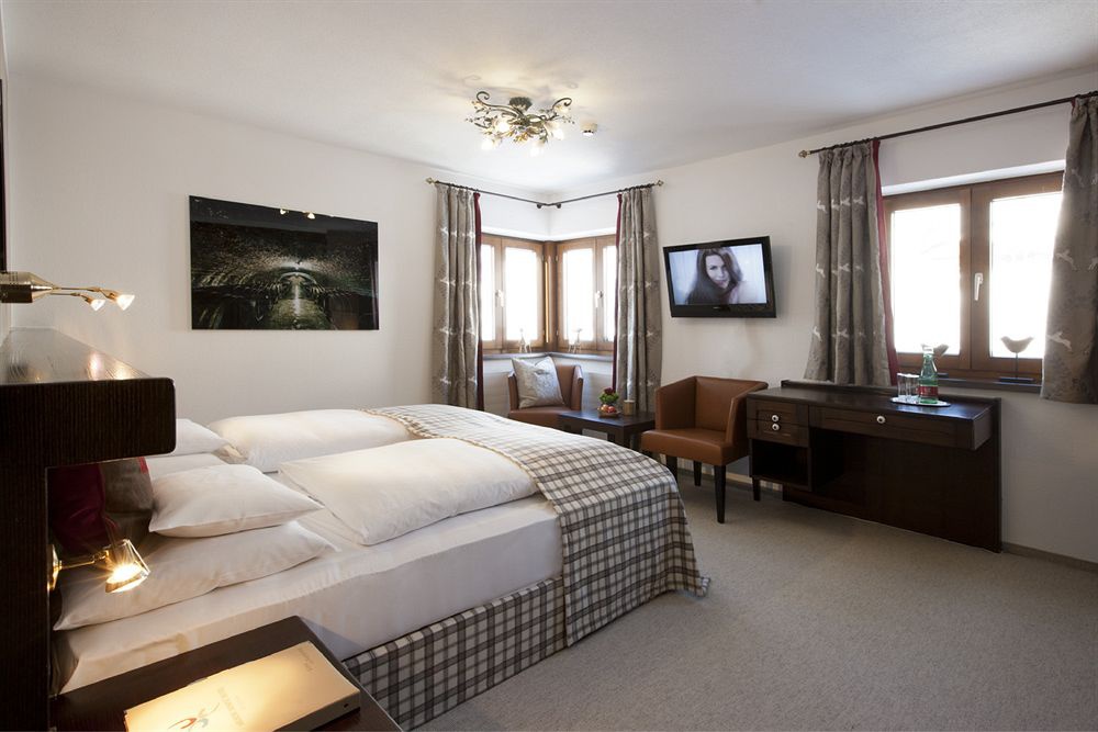 В номерах вас ждут стильный, элегантный декор с альпийскими нотками и мотивами. Высокий комфорт и красота номеров подчеркивается прекрасной мебелью и картинами, стильным текстилем и необычными светильниками.