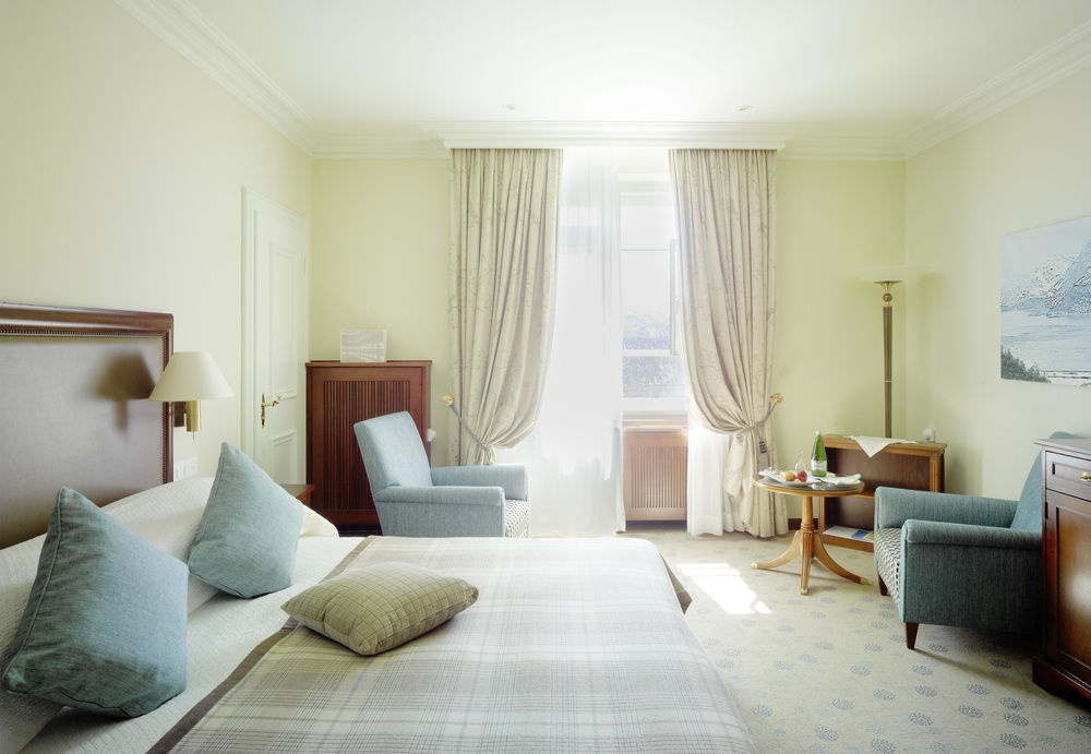 170 номеров и сьютов (разных категорий: от классических номеров до просторных сьютов и резиденций) оформлены с акцентом на простор, свет и комфорт, используя классические элементы дизайна, натуральные материалы и мягкие оттенки. В большинстве номеров есть панорамные виды на озеро Санкт-Мориц, горы или парк отеля. Номера оборудованы премиальной мебелью, большими зонами отдыха, полноценными ванными комнатами с душевыми или ваннами и современными технологиями. Сьюты предоставляют отдельные гостиные зоны, балконы или террасы, а также дополнительные услуги по индивидуальному запросу. Размещение ориентировано на сочетание исторического шарма и современного удобства для приятного отдыха и уюта.