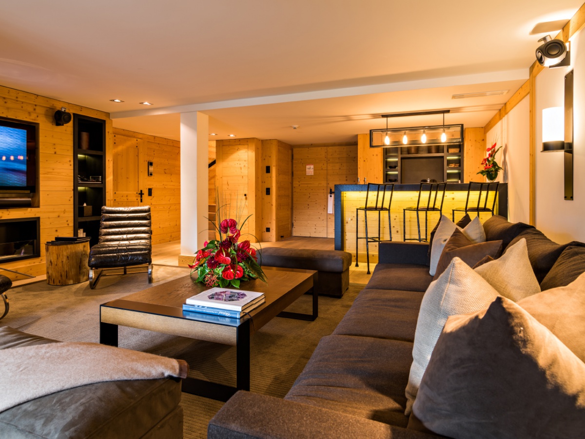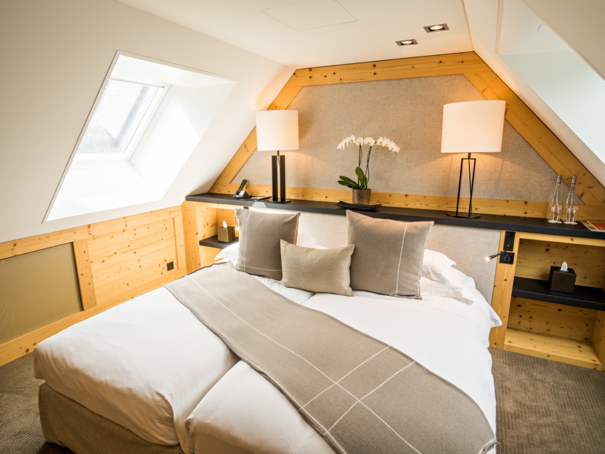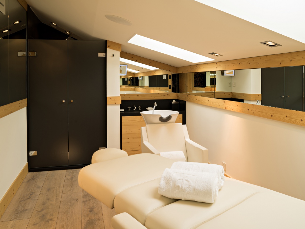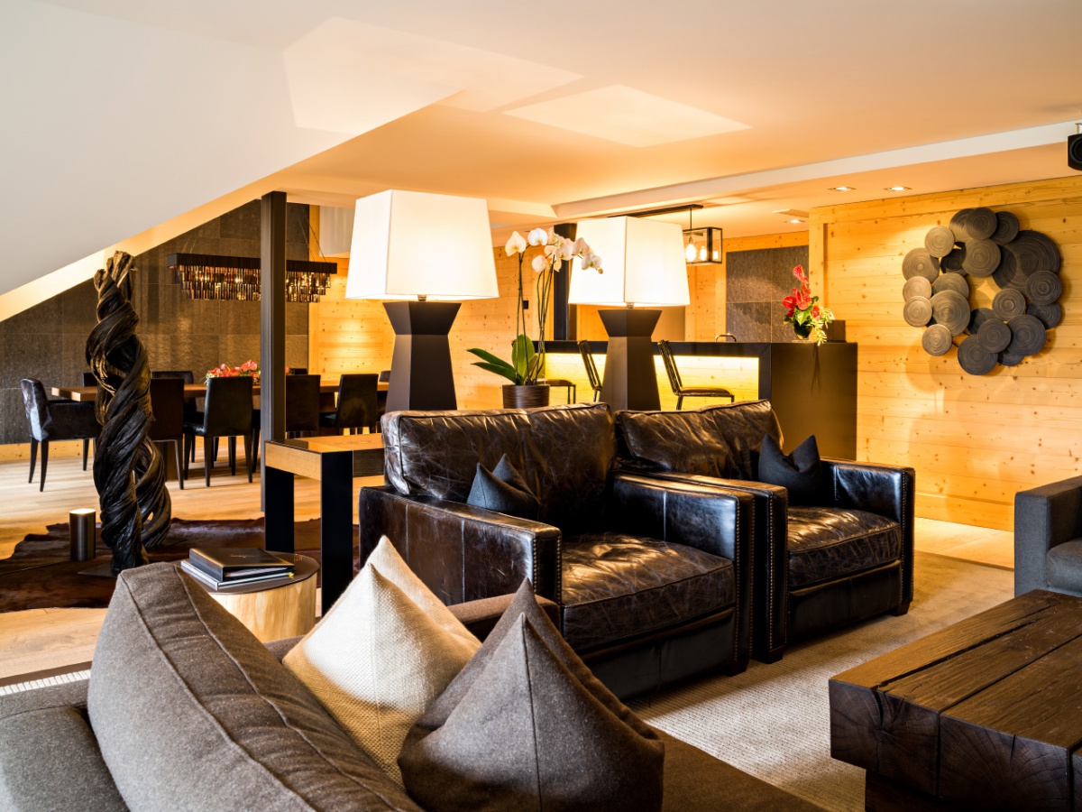 My Gstaad Chalet: 400 м2. Роскошный номер, расположенный на двух верхних этажах отеля, состоит из 4 спален, гостиной с камином, столовой, кухни, ванных комнат, персонального СПА с сауной, парной, джакузи и массажной зоной, балкона с видом на горы. Гостям номера предоставляются услуги персонального дворецкого.