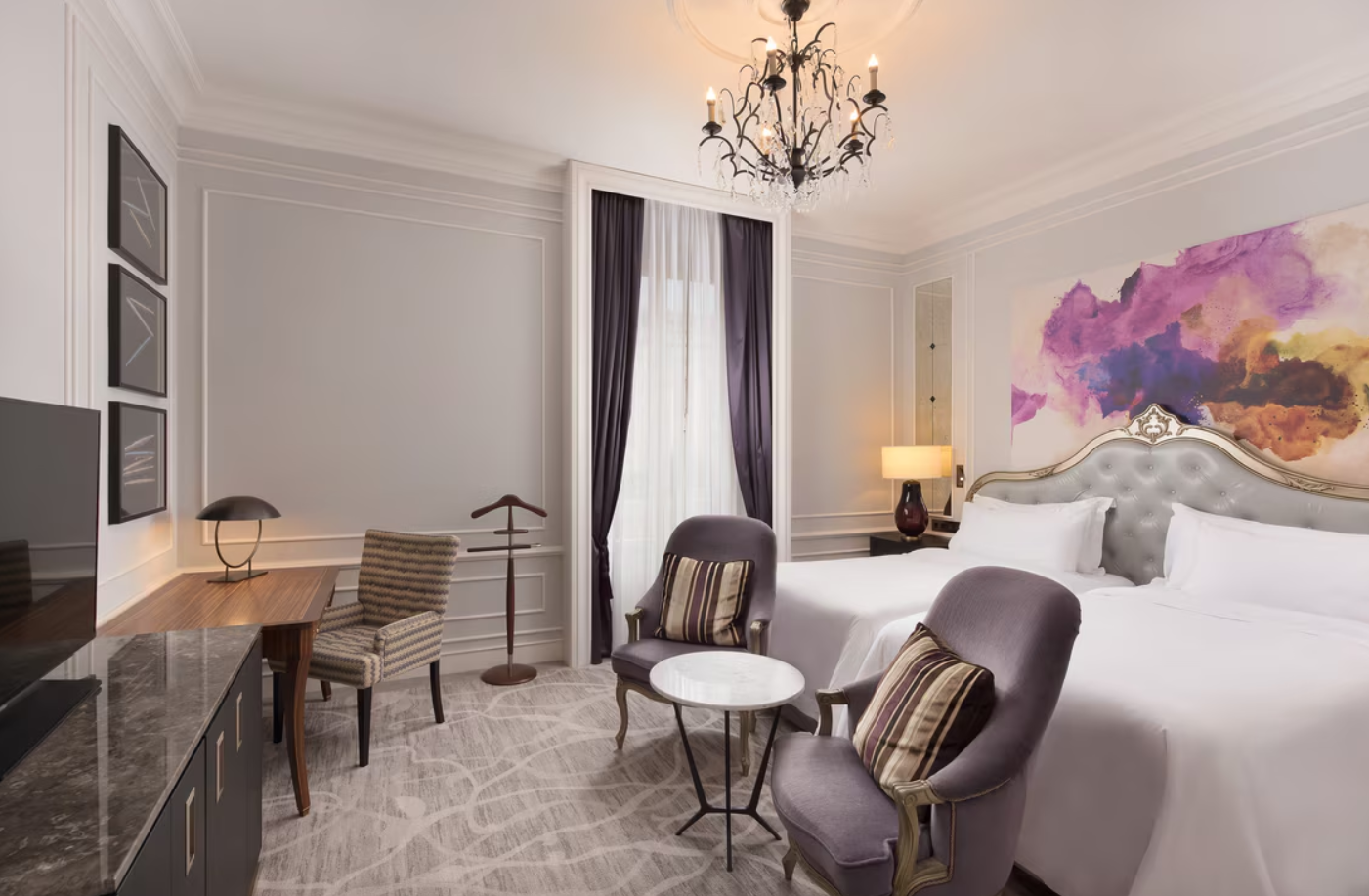 Каждый из номеров является примером очаровательного синтеза прошлого и настоящего отеля благодаря своей изящной атмосфере с современными деталями. Многочисленные удобства в номерах были тщательно подобраны, чтобы предоставить гостям непревзойденную степень комфорта. Каждый номер просторный, аутентичный и элегантный, предлагая уникальную возможность по-настоящему ощутить истинную сущность Сан-Себастьяна. Побалуйте себя комфортом одного из изысканных люксов с восхитительным видом на реку или старый город, путешествуя с семьей, откройте для себя семейные номера для четырех гостей. Для больших компаний насладитесь комфортом многокомнатных люксов с двумя, тремя или четырьмя спальнями и одной или двумя гостиными. Вы можете предпочесть смежные люксы с просторными террасами, чтобы насладиться потрясающими видами.