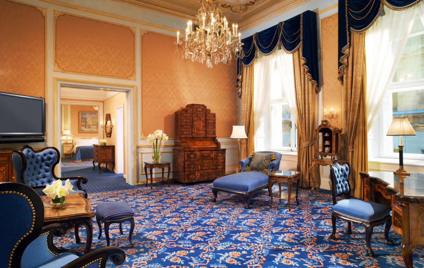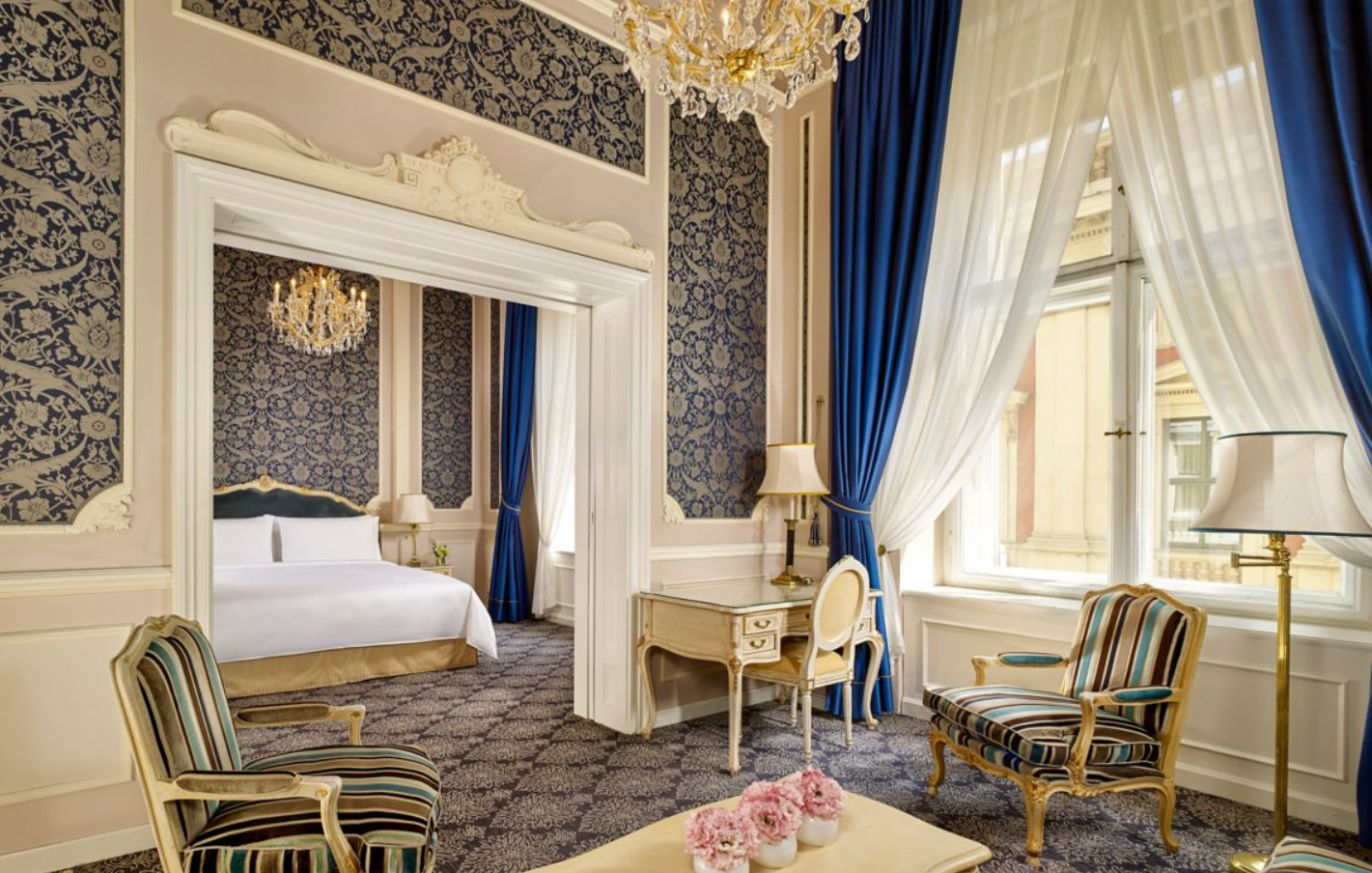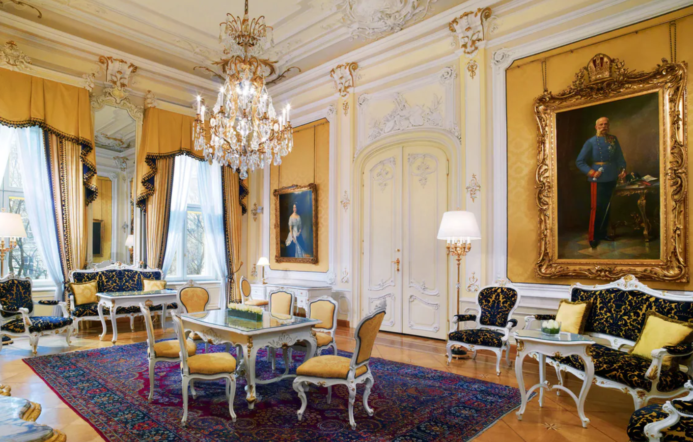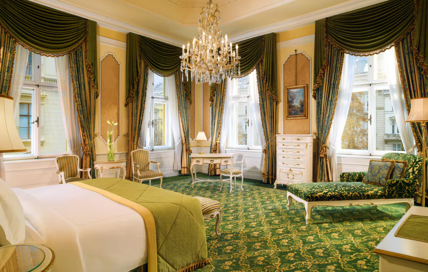 Номера отличаются использованием антикварной мебели, шёлковых стеновых покрытий, мраморных ванных комнат и высоких потолков. Многие сьюты имеют отдельные гостиные зоны и виды на исторический центр Вены. Интерьеры передают атмосферу дворцовой жизни, при этом оснащены современными удобствами и технологиями.
