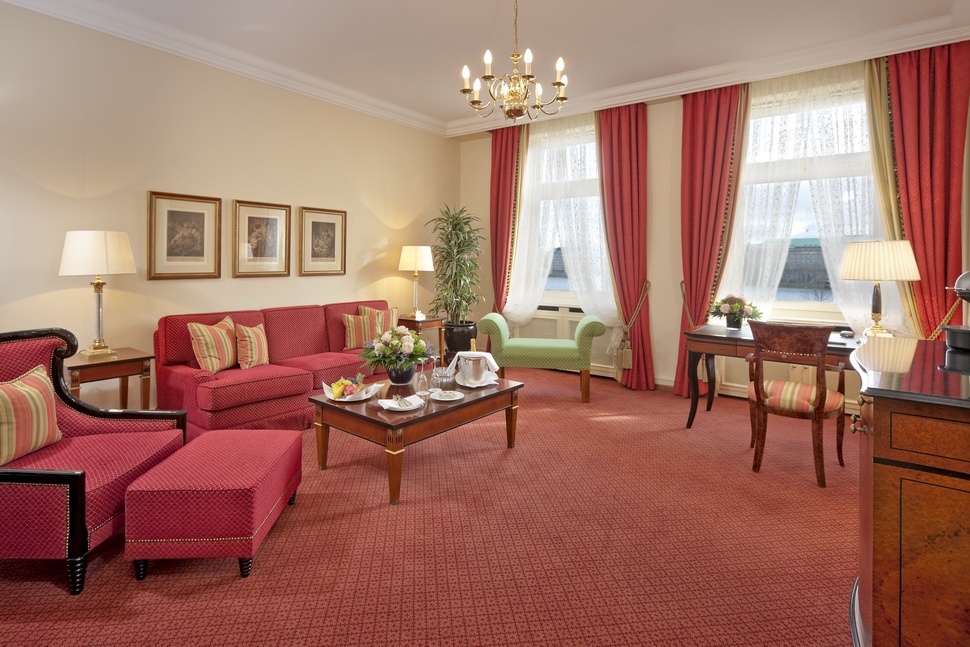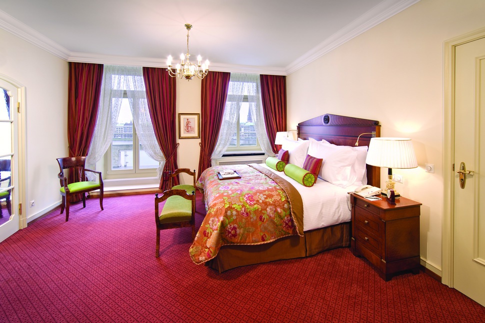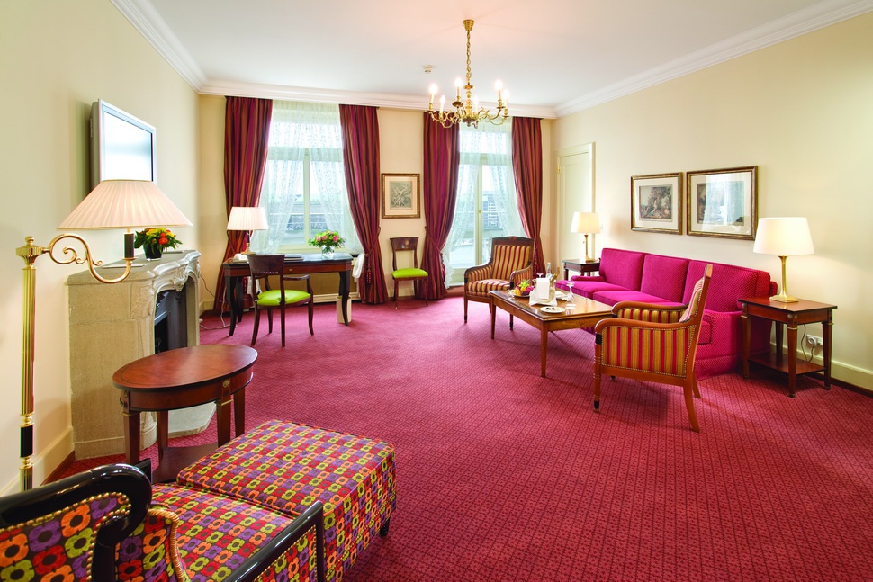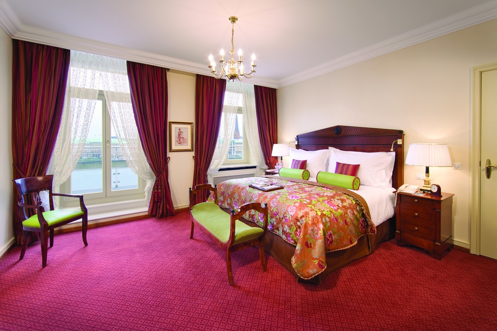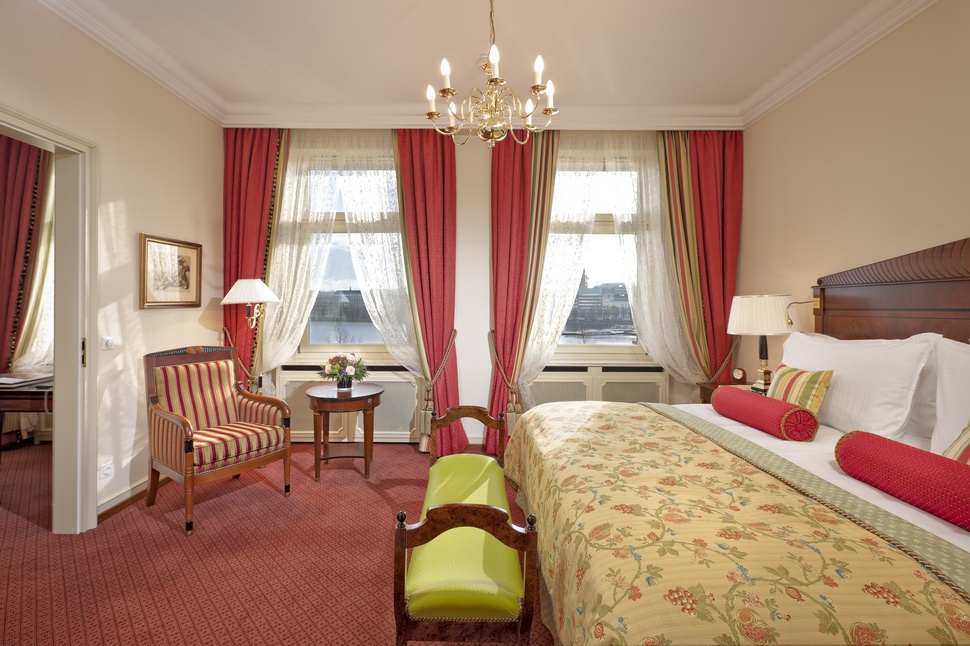 Junior Suite: 40-56 м2. Состоит из спальни с просторной гостиной зоной, ванной комнаты, в некоторых номерах есть балконы, выходит на озеро, центр Гамбурга или во внутренний двор отеля.