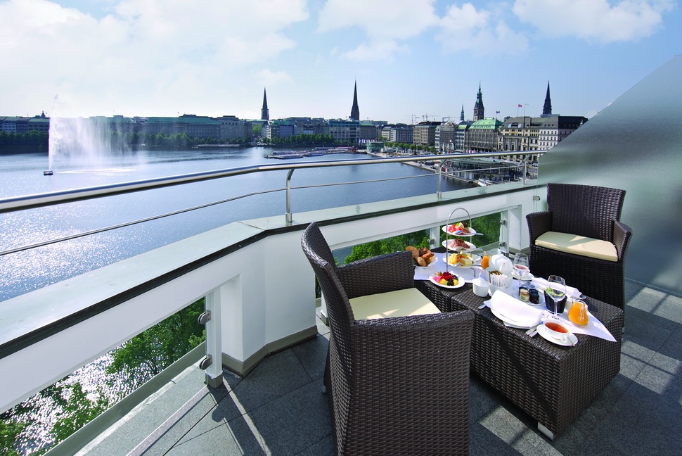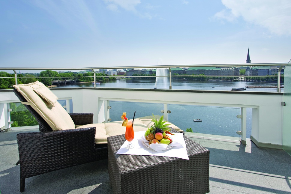 Suite & Deluxe Suite: 60-82 м2. Состоит из спальни, просторной гостиной зоны (в некоторых номерах визуально отделенной), ванной комнаты, в некоторых номерах есть балконы, выходит на озеро, центр Гамбурга или во внутренний двор отеля.