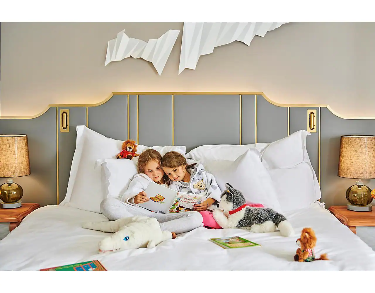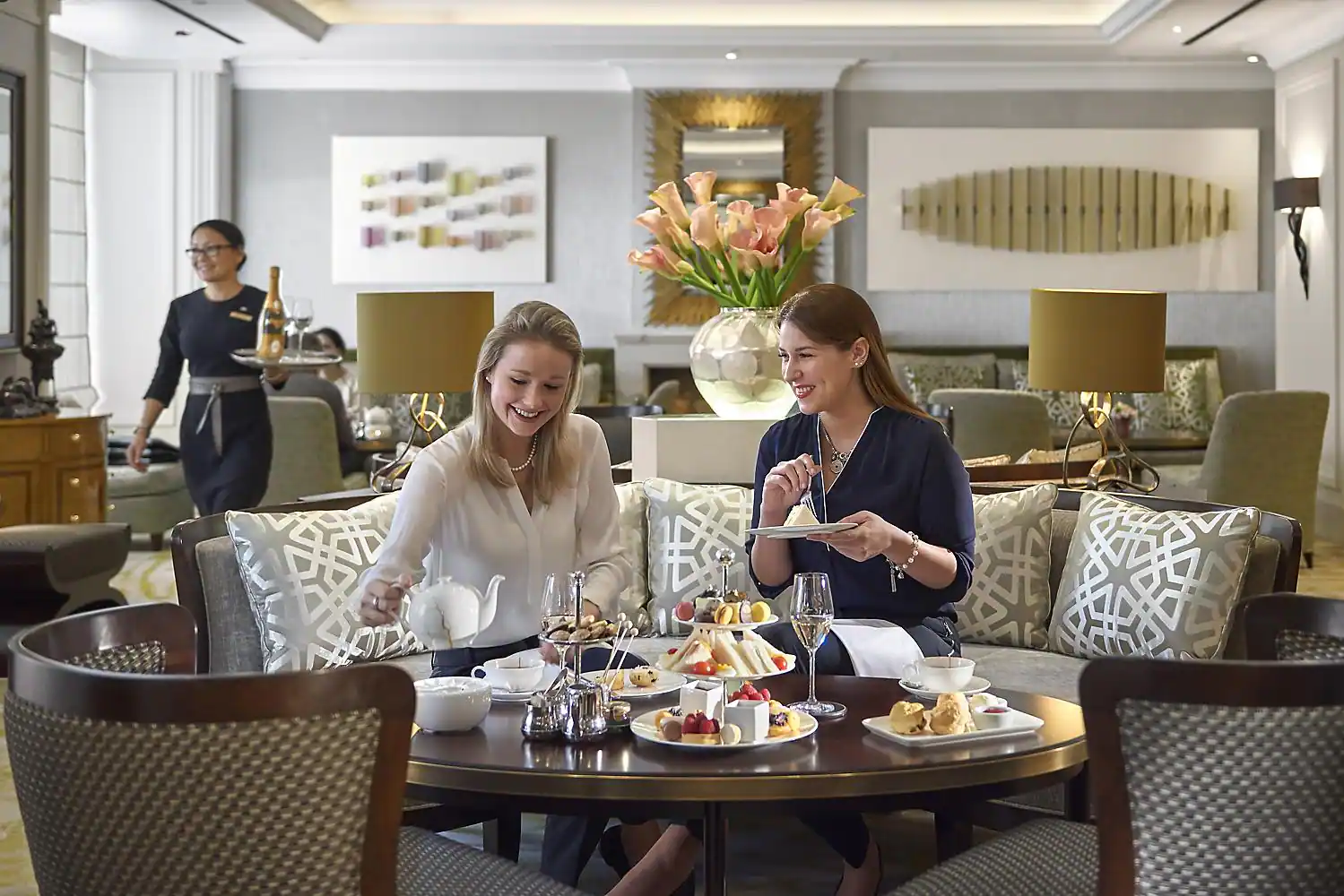 Two-Bedroom Tower Suite: 125-140 м2. С видом на город; состоят из 2 спален (с кроватью king size и двумя кроватями twin), гардеробной, круглой гостиной, столовой на 6 персон с письменным столом, мини-столовой, двух ванных комнат с ванной и душевой кабиной, гостевой уборной. Паркетные полы, изысканная мебель и насыщенная гамма кремовых, золотых и коричневых оттенков создают радушное настроение этих номеров.