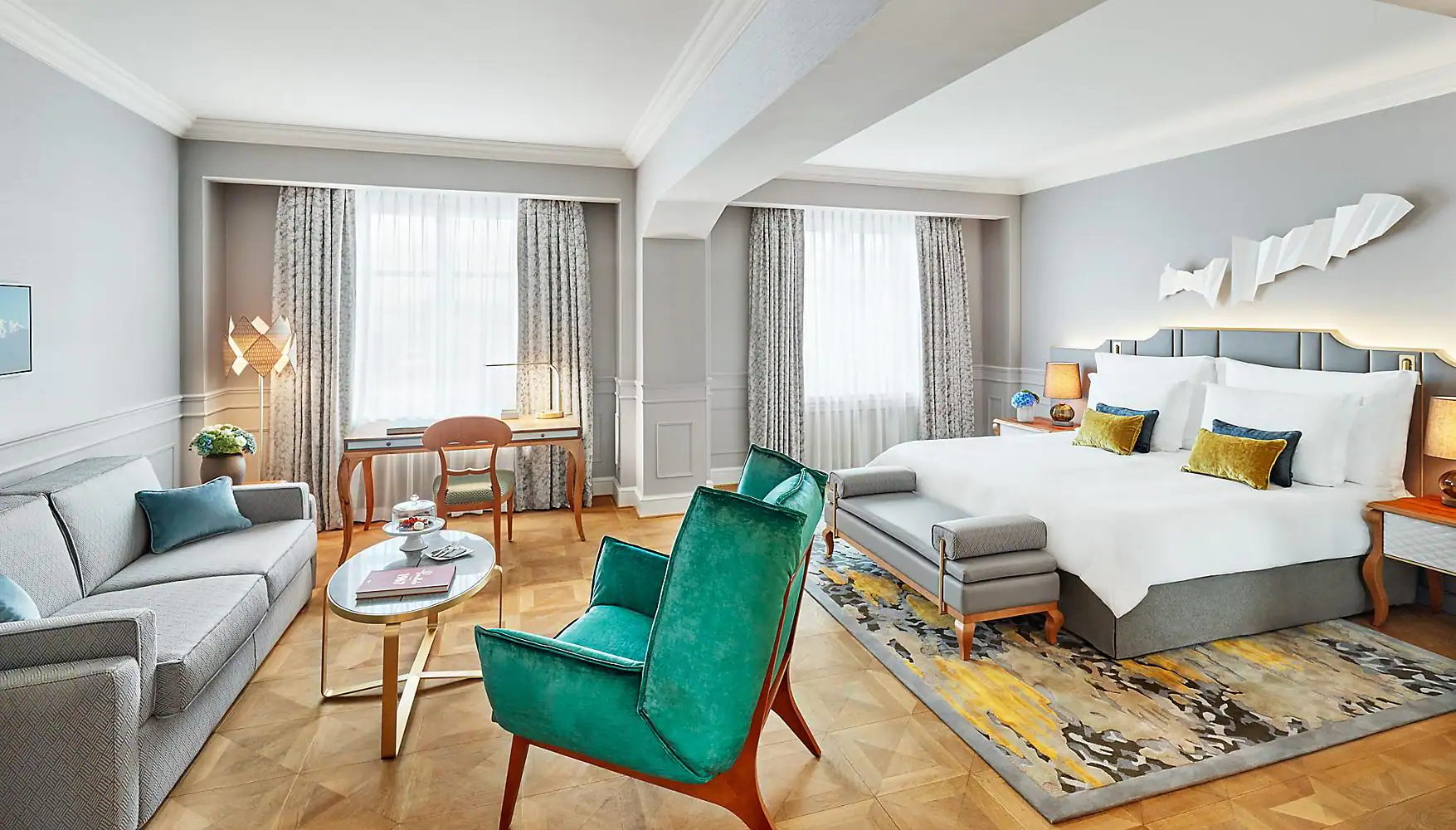 Grand Presidential Suite: 325 м2. Фешенебельный номер, расположен на последнем этаже отеля, с видом на город и пивоварню Hofbräuhaus; включает главную спальню, пять дополнительных спален, ванные комнаты, гостиную, кухню, столовую, террасу, опоясывающую номер по периметру. В главной ванной комнате - джакузи, парная. Сочетание великолепных материалов: тик паркетов, кристаллы Сваровски, которыми отделаны светильники, шелк и папирус обоев, предметы антиквариата и множество других элементов – создают особенную атмосферу этого номера.
