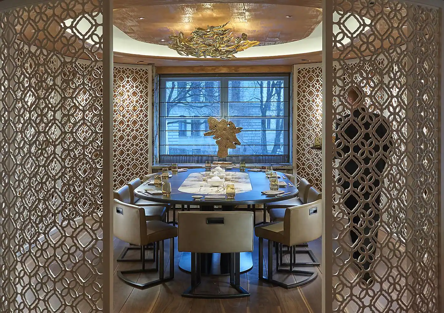 Oriental Suite: 65 м2. С видом на город и собор, состоят из спальни с кроватью king size, гардеробной, гостиной с письменным столом, ванной комнаты с ванной и душевой кабиной и меблированного балкона. Естественное освещение, азиатская эстетика дизайна, прослеживающаяся в элегантной меблировке, работах Вона Ки Чи и насыщенной гамме кремовых, золотых и коричневых оттенков создают восточный флер этого номера.