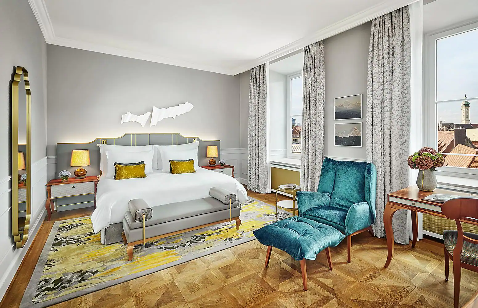 Mandarin Room: 41-50 м2. С видом на город и пивоварню Hofbräuhaus; состоят из спальни с кроватью king size или двумя кроватями twin, письменным столом и ванной комнаты с ванной и душевой кабиной. Мебель из вишневого дерева, естественное освещение и высокие потолки подчеркивают уникальное оформление этих номеров.
