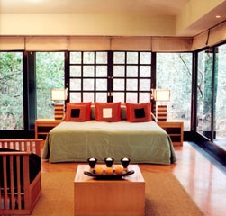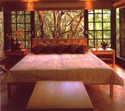 В отеле 16 бунгало. В отделке интерьеров использовано много стекла, почти все стены всех бунгало - прозрачны. Так достигается некое философское единение с природой, задуманное дизайнерами. Из окон можно реально наблюдать за жизнью леса, мелких животных и птиц. В оформлении традиционные африканские этнографические мотивы умело сочетаются с авангардным дизайном и современным стилем. Использована мебель и произведения декоративно-прикладного искусства, подлинные или стилизованные под африканские, полы устланы коврами. Каждое бунгало состоит из открытой террасы, спальни, просторной гостиной и ванной комнаты с отдельной душевой. Из гостиных можно выйти непосредственно к бассейну или прямо в чащу леса.