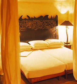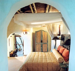 В отеле всего 6 бунгало. В отделке интерьеров использованы некоторые испанские и мексиканские мотивы, искусно переплетенные с традиционными африканскими этнографическими мотивами, авангардным дизайном и современным стилем. Использована мебель и произведения декоративно-прикладного искусства, подлинные или стилизованные под африканские, полы устланы коврами. Каждое бунгало состоит из нависающей над скалистым склоном открытой террасы с собственным бассейном, окруженной деревянным заборчиком-«тыном», а также из спальни с кроватью и балдахином с противомоскитной сеткой, просторной гостиной и ванной комнаты с отдельной душевой. Из гостиной можно выйти непосредственно на террасу или обрывистый склон.