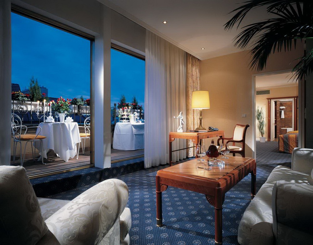Presidential Suite: 200 м2. Роскошный номер в стиле ар-деко, состоит из спальни с кроватью double, гостиной с обеденной зоной, мини-кухни, ванной комнаты с ванной и душем. Максимальное размещение – 2 взрослых +1 ребенок. Возможно соединение номеров. Дополнительно в номере – набор для приготовления чая и кофе, бесплатный мини-бар.