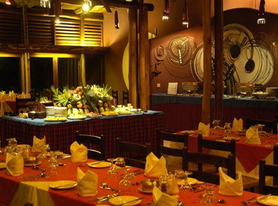 В ресторане отеля гостям предлагается шведский стол, объединяющий блюда европейской, африканской и индийской кухни. По желанию завтрак сервируется под открытым небом, в буше.