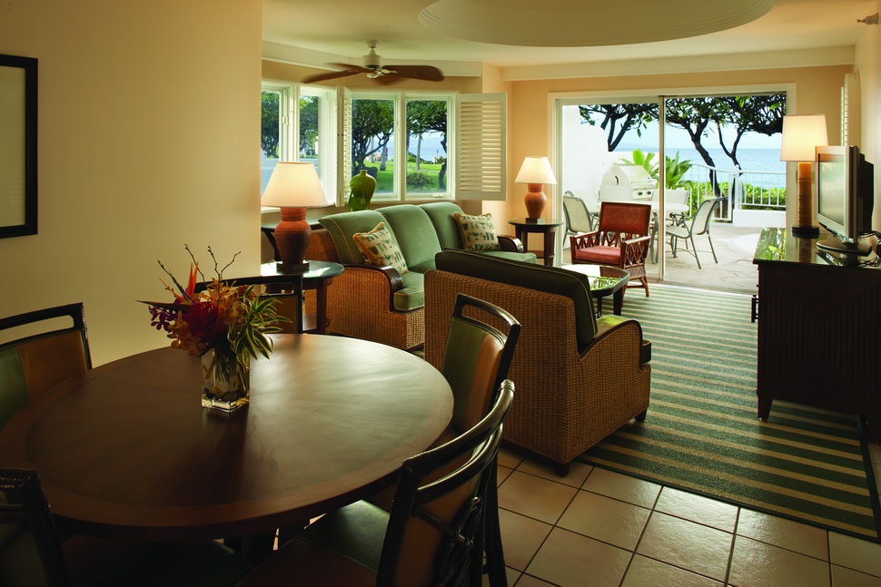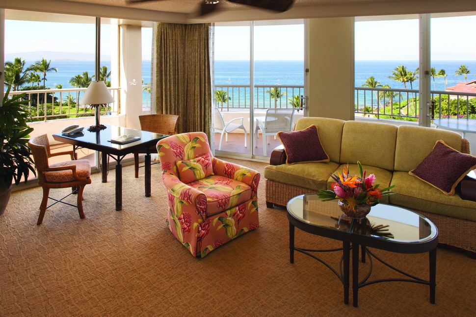 Fairmont Mountainside Suite: 80 м2. Состоит из спальни с кроватью king-size или двумя кроватям double, гостиной с диваном queen-size, обеденной зоной и мини-кухней, ванной комнаты, балкона с видом на гору Халеакала.