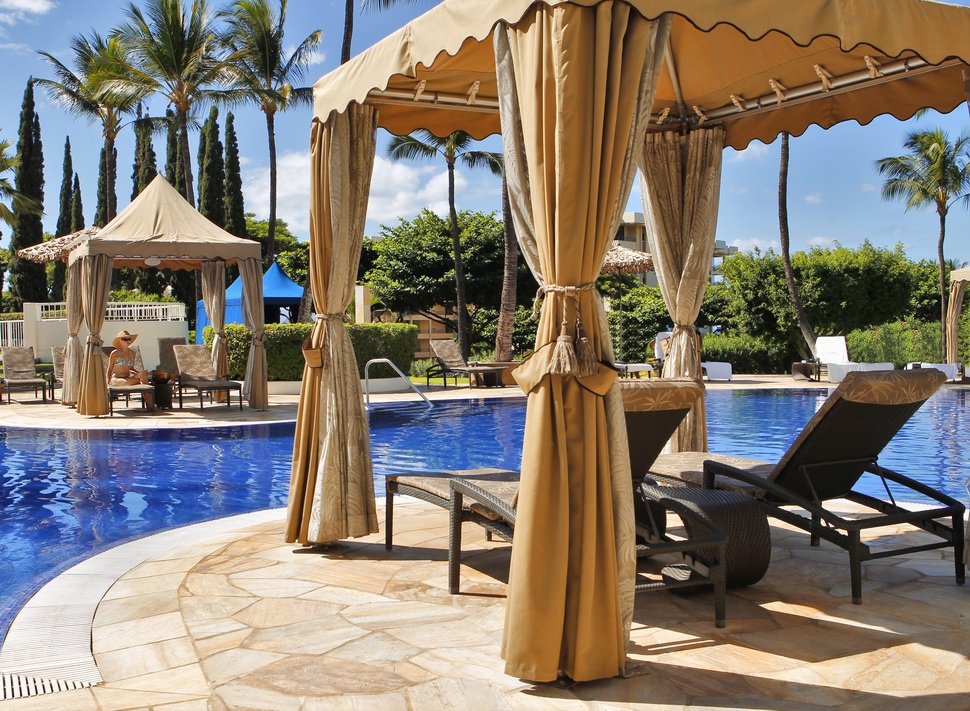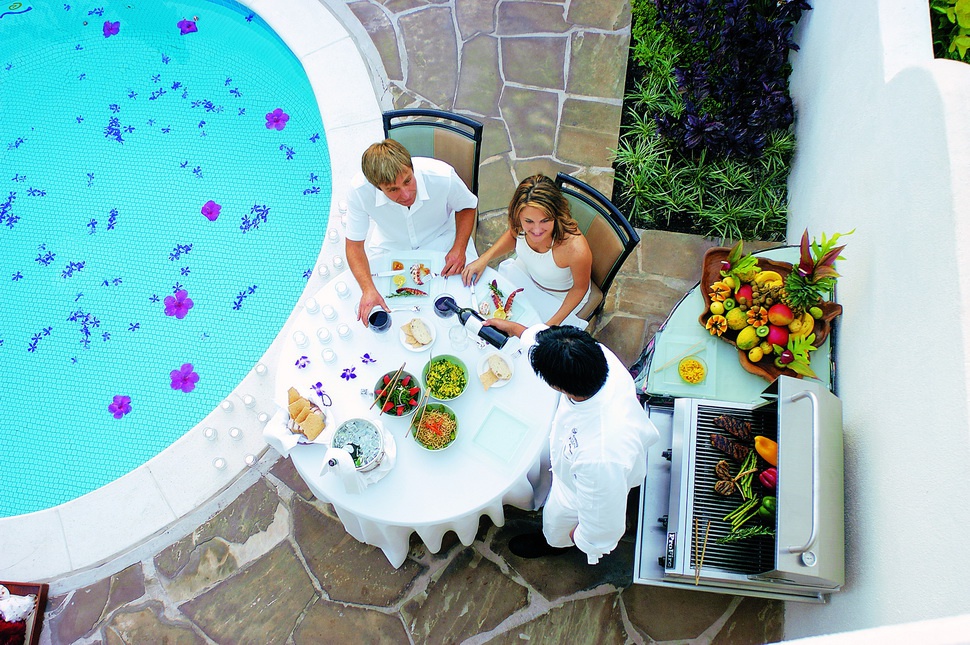 Poolside Suite: 80 м2. Состоит из спальни с кроватью king-size или двумя кроватям double, гостиной с диваном queen-size, обеденной зоной и мини-кухней, ванной комнаты, балкона с видом на сады и выходом к верхнему бассейну-лагуне.