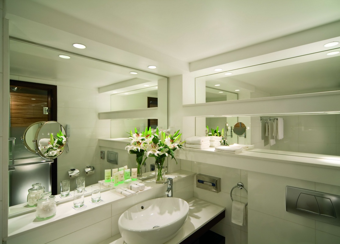 Отель располагает номерами различных категорий. Все они хорошо оснащены и оформлены в светлых тонах. Ванные комнаты в номерах выполнены из мрамора.