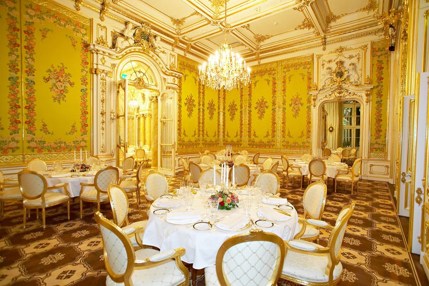 Palais Suites: двухуровневые номера, расположенные на 2 и 3 этажах, украшены итальянскими и французскими антикварными предметами и мебелью итальянской и французской мебелью XVIII века, выходят на сады Bastion.