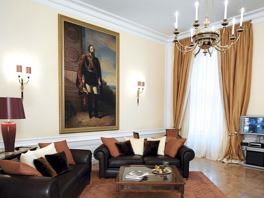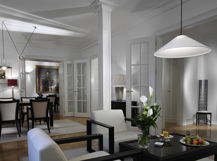 Imperial Suites: двухуровневые номера, расположенные над церемониальными залами дворца. Номера выполнены в имперском стиле, обставлены антикварной мебелью Бидермейр или эпохи Директории, украшены старинными хрустальными люстрами Lobmeyr.