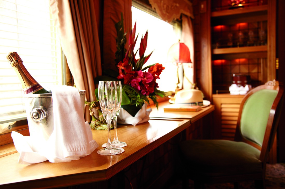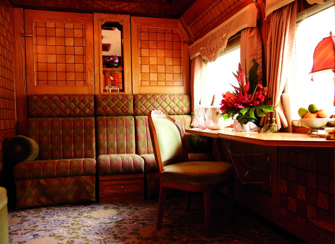 Элегантно отреставрированный декор поезда отличается затейливой инкрустацией и отделкой тиковым деревом. Вы можете выбрать один из трех вариантов комфортабельных, отделанных деревом купе: Pullman, State и Presidential. Каждое кондиционированное купе имеет собственный душ и туалет, а также огромные окна. Проводник обслуживает вас на протяжении всего пути 24 часа в сутки.