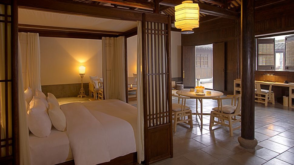Amanfayun Villa: 290 м2. Роскошная двухэтажная вилла, включает 2 спальни с кроватями king-size и ванными комнатами (одна спальня – с гостиной зоной), гостиную с обеденной зоной, библиотеку, массажный кабинет, внутренний двор с зоной отдыха.