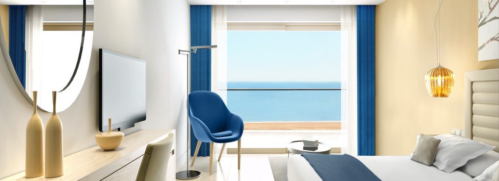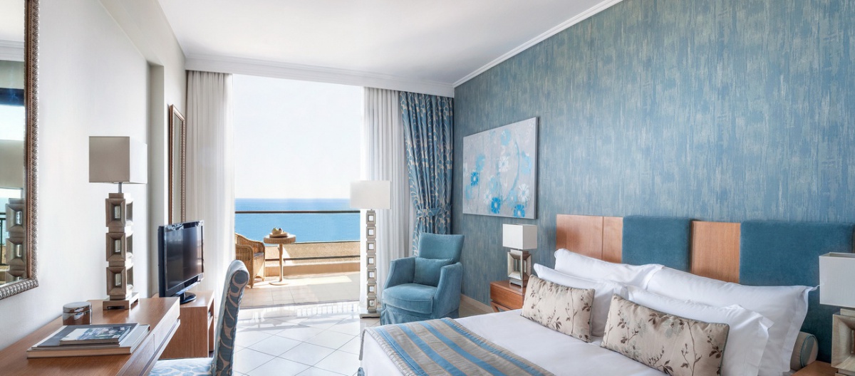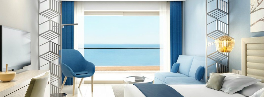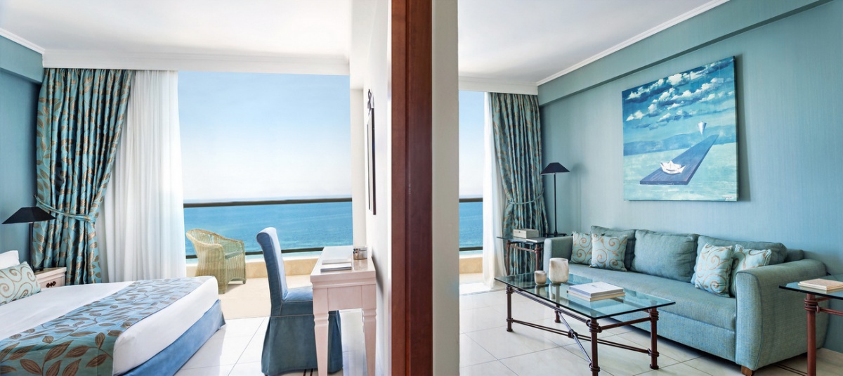 55 м2. Превосходно декорированный роскошный люкс включает в себя просторную гостиную и отдельную элегантную спальню, для комфортного проживания двух взрослых и двух детей. В номере имеется большая ванная комната с душем и ванной, а также полностью меблированный балкон или терраса с чудесным видом на море.