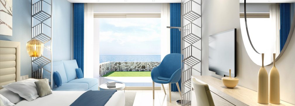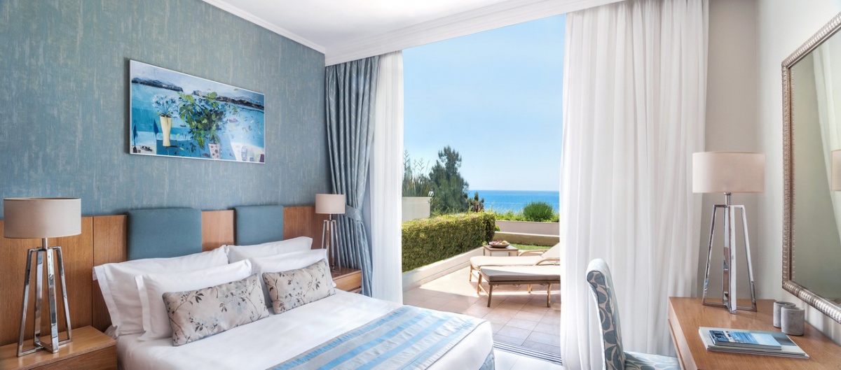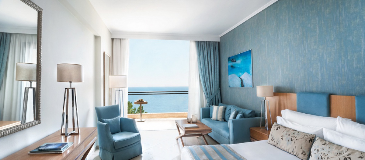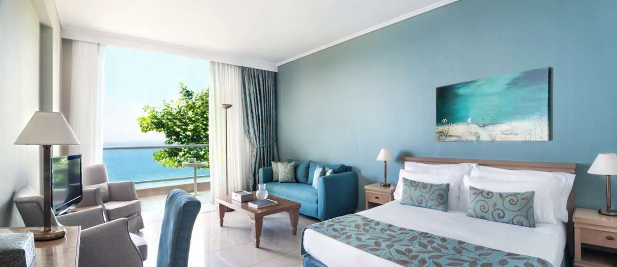 35-40 м2. Очень просторный роскошный люкс, объединяющий спальню и гостиную в одном современном помещении с открытой планировкой, вмещающем двух взрослых и двух детей. Элегантная ванная комната оснащена ванной и душем, а с меблированного балкона или террасы открывается восхитительный вид на Эгейское море.