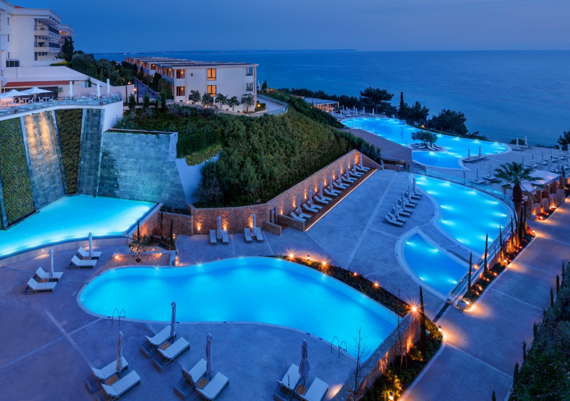 Ikos Oceania - это роскошный курорт, построенный в современном Средиземноморском стиле с использованием элементов традиционной греческой архитектуры. Отель расположен амфитеатром на холме, окруженном сосновыми деревьями, оливковыми рощами и кипарисами. У подножия холма находится длинный песчаный пляж. Компания Ikos применяет к Ikos Oceania самые высокие стандарты качества услуг, развлечений, дизайна, для того, чтобы создать совершенно новую для Греции концепцию - отель, работающий по системе Ultra Allinclusive. Ikos Oceania принимает гостей с апреля по октябрь.