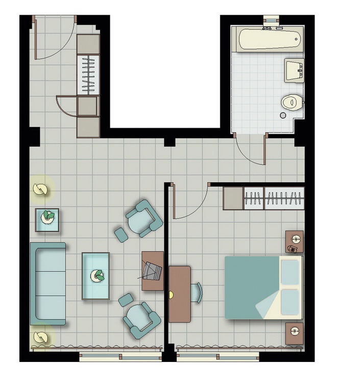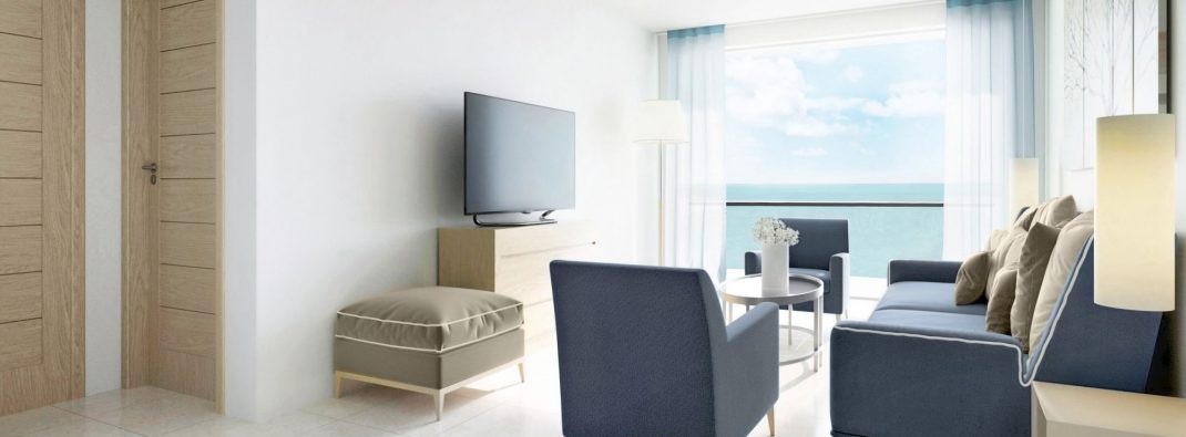 48 м2. Современный полулюкс со стильной гостиной и отдельной спальней, для комфортного проживания двух взрослых и двух детей. Ванная комната оснащена ванной и душем, а с лежаков на широкой меблированной террасе открывается потрясающий вид на море.