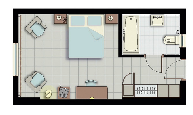 30 м2. Стильный двухместный номер включает в себя собственную меблированную террасу и ванную комнату с ванной включающей душ. В просторном номере с окнами от пола до потолка есть всё необходимое для комфортного проживания двух взрослых и одного ребёнка.