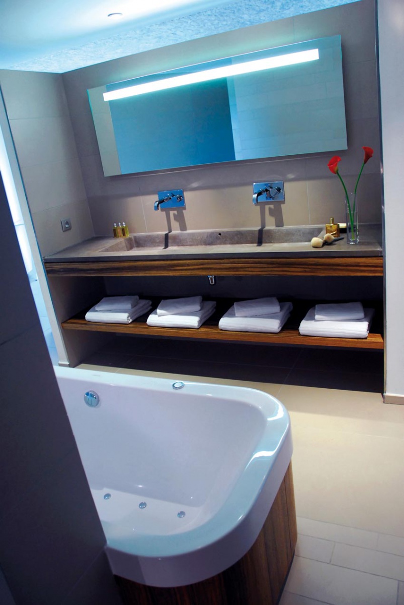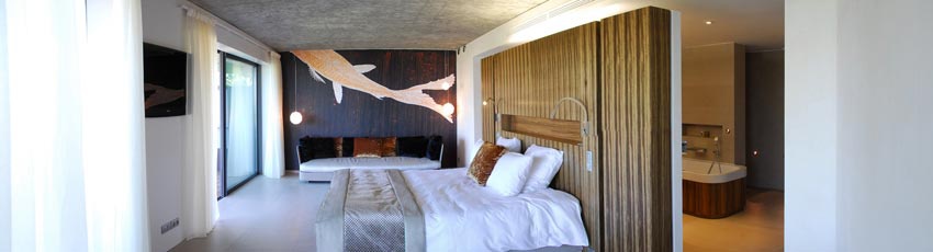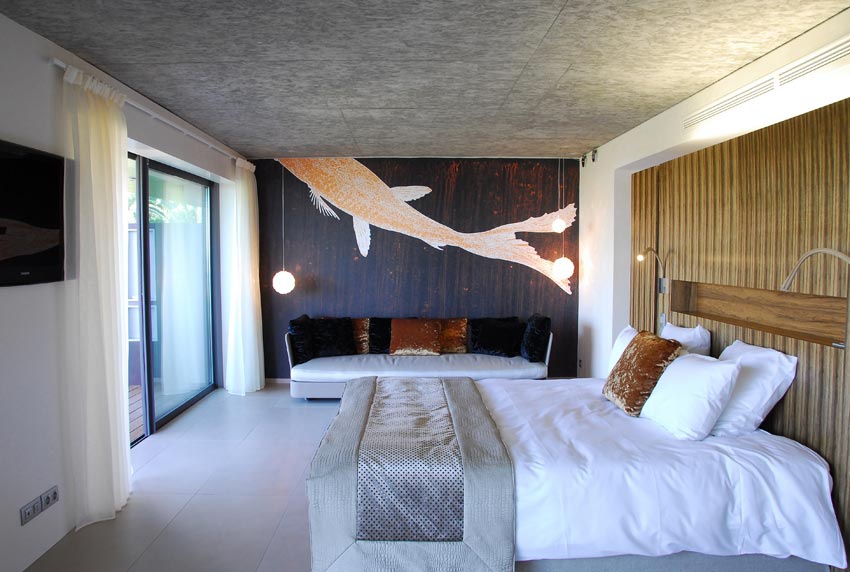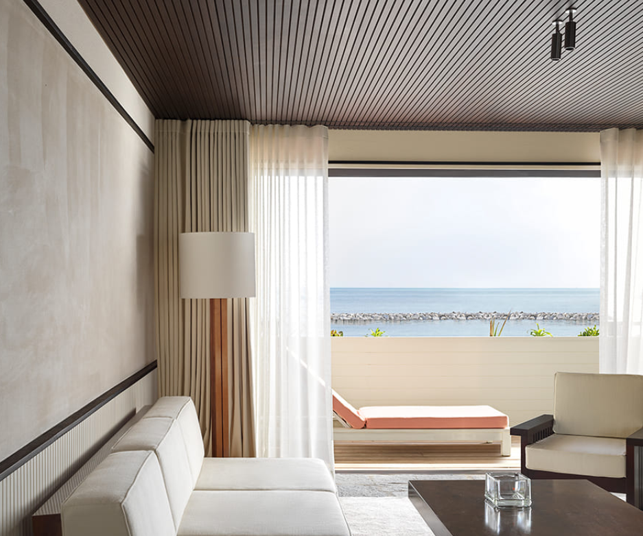С 35 номерами и люксами площадью от 30 м² вы почувствуете себя как дома в Beach Hotel. Вы входите в номера через белые лакированные деревянные дорожки. Каменный пол простирается от открытых пространств до внутренних помещений номеров. В некоторых номерах есть собственный сад, а другие на верхних этажах имеют захватывающие виды с террасы. В просторных ванных комнатах естественный свет сочетается с розовым мрамором. Диваны образуют внутреннюю гостиную, где можно почитать книгу, помечтать, любуясь видом, или даже пообедать в своей комнате за деревянным журнальным столиком.
