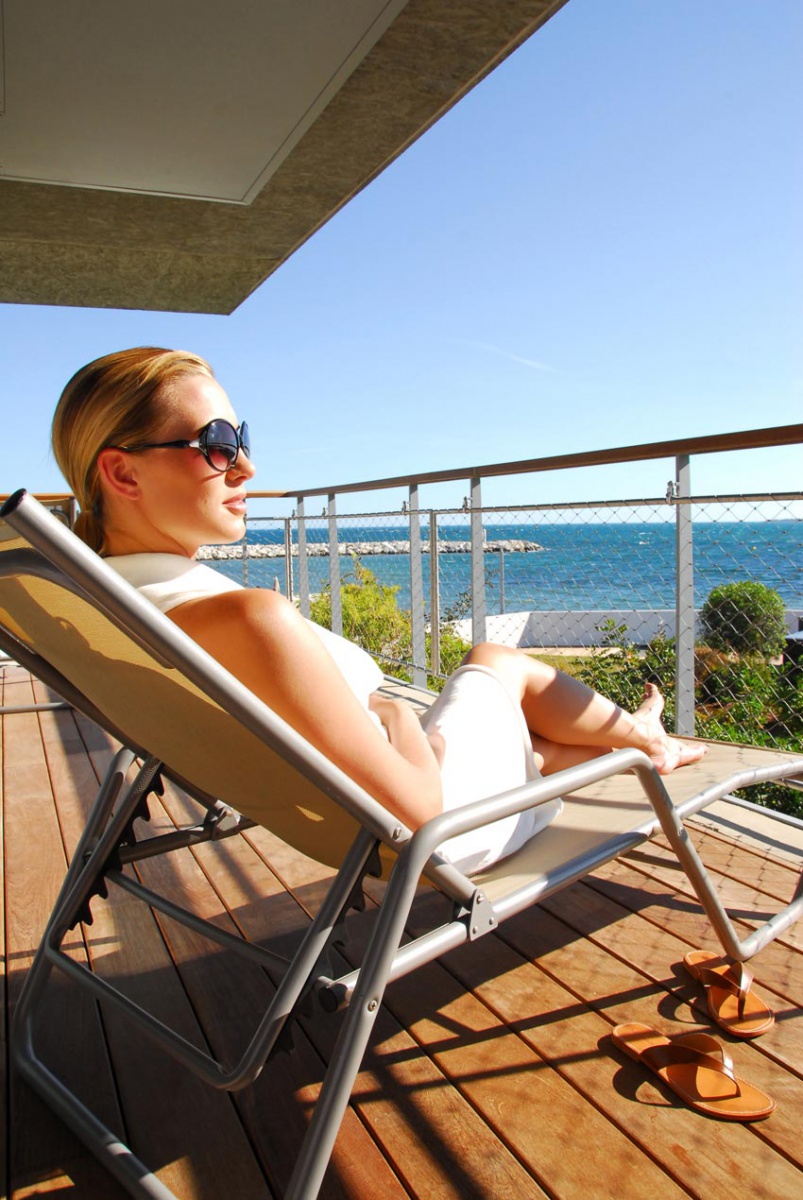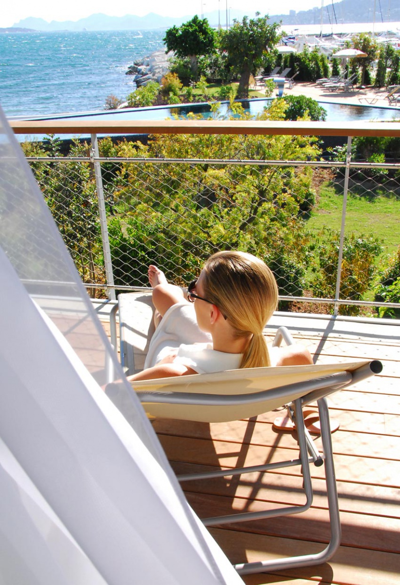 Люксы площадью более 50 кв. м предлагают захватывающие виды на пейзаж. Ванные комнаты оборудованы большими ваннами или тропическим душем. В них есть большая терраса с деревьями или сад, который простирается от спальни. Вы можете помечтать на удобных шезлонгах. Вид на залив Антиб простирается бесконечно.