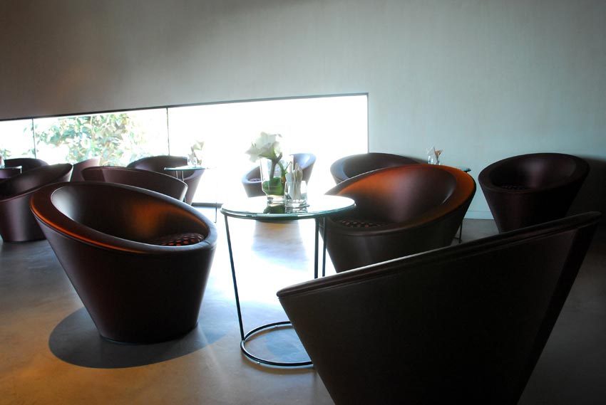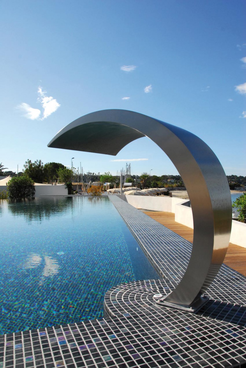 Beach Hotel был перепроектирован архитектором Бернаром Дюбуа как дань уважения геометрическим, обтекаемым домам Палм-Спрингс и средиземноморским виллам. Отель, задуманный с солнцем и морем, играет светом и тенью на белых оштукатуренных стенах. Это геометрическая структура, грубая и очаровательная. Манифест, обращенный к морю. Две силы сталкиваются друг с другом. Декор, сочетающий растительные и минеральные элементы. Виды открываются на природную среду Кап-д'Антиб, которая часто вдохновляла кинематограф. Между портами Галлис и Крутон, Beach Hôtel является одним из знаковых адресов Лазурного берега.