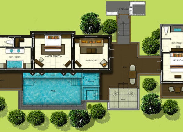 Royal Banyan Pool Villa: расположена на возвышении, включает гостиную, спальню, ванную комнату, гардеробную, павильон на открытом воздухе, террасу с бассейном и захватывающим видом на сады и Сиамский залив.