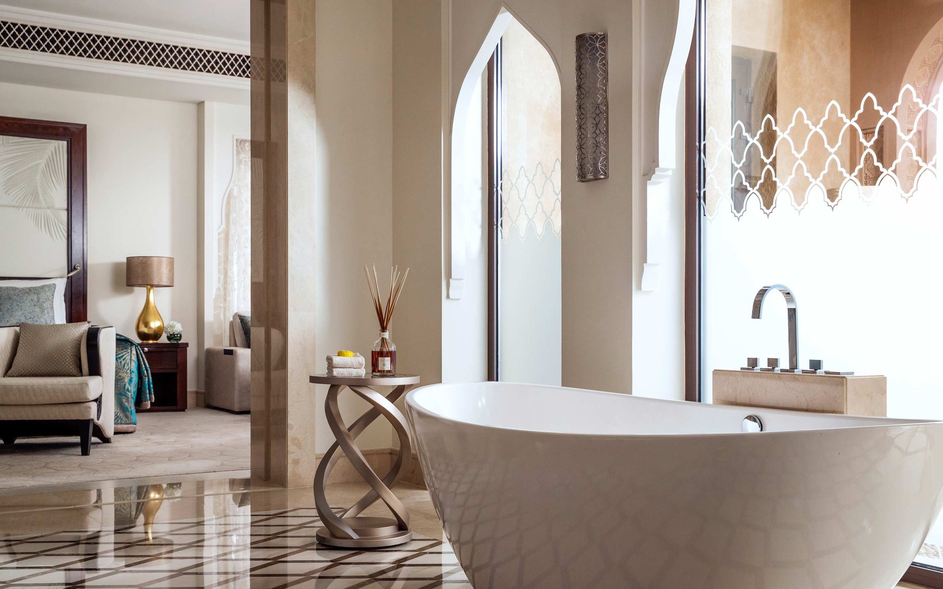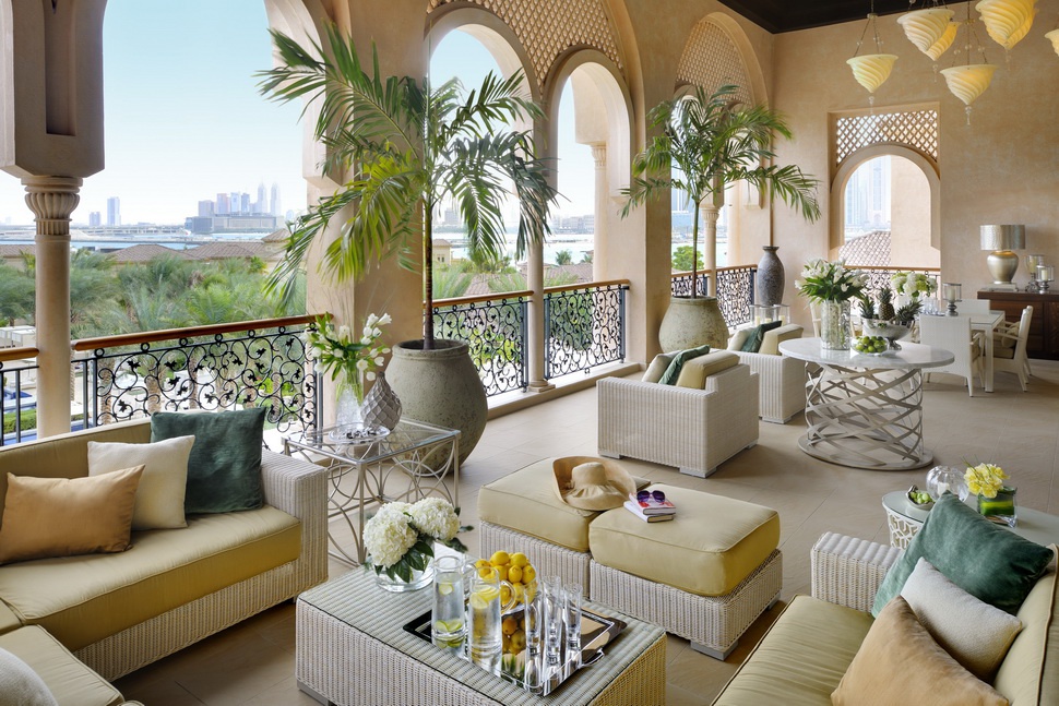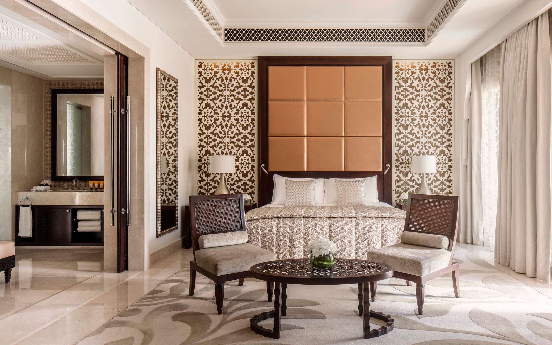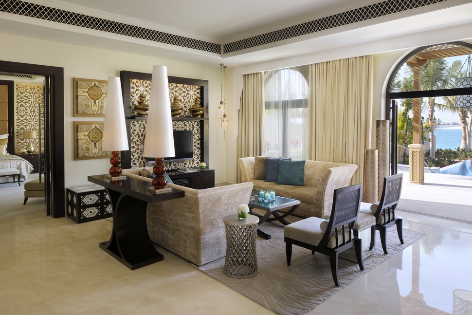 Номера в One&Only The Palm отличаются утонченной изысканностью и комфортом. При оформлении их интерьеров были использованы мавританский и андалузский стили с традиционными арабскими акцентами в виде резных перегородок, фигурных арок, узоров из мозаики и аутентичных арабесок.