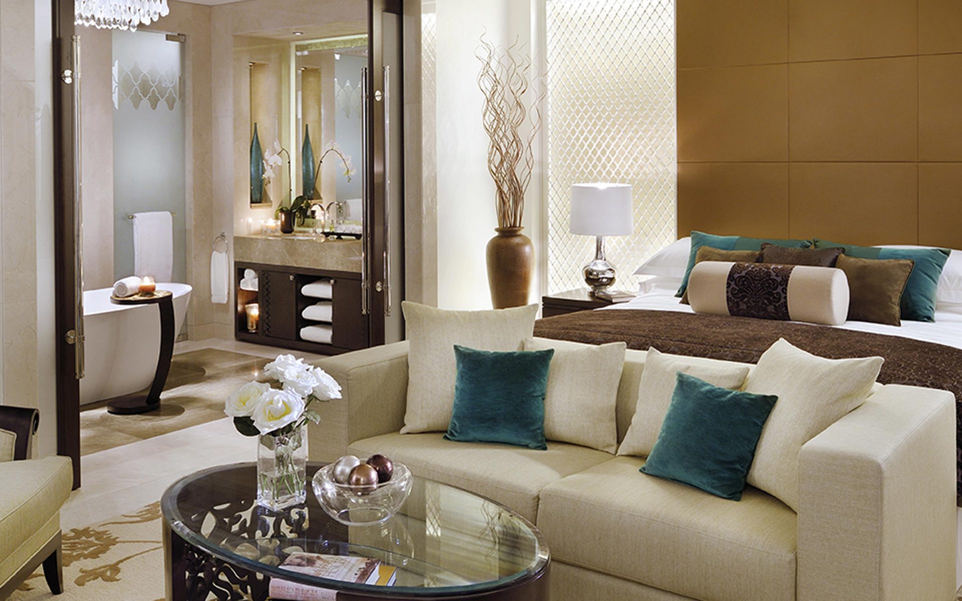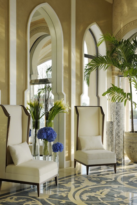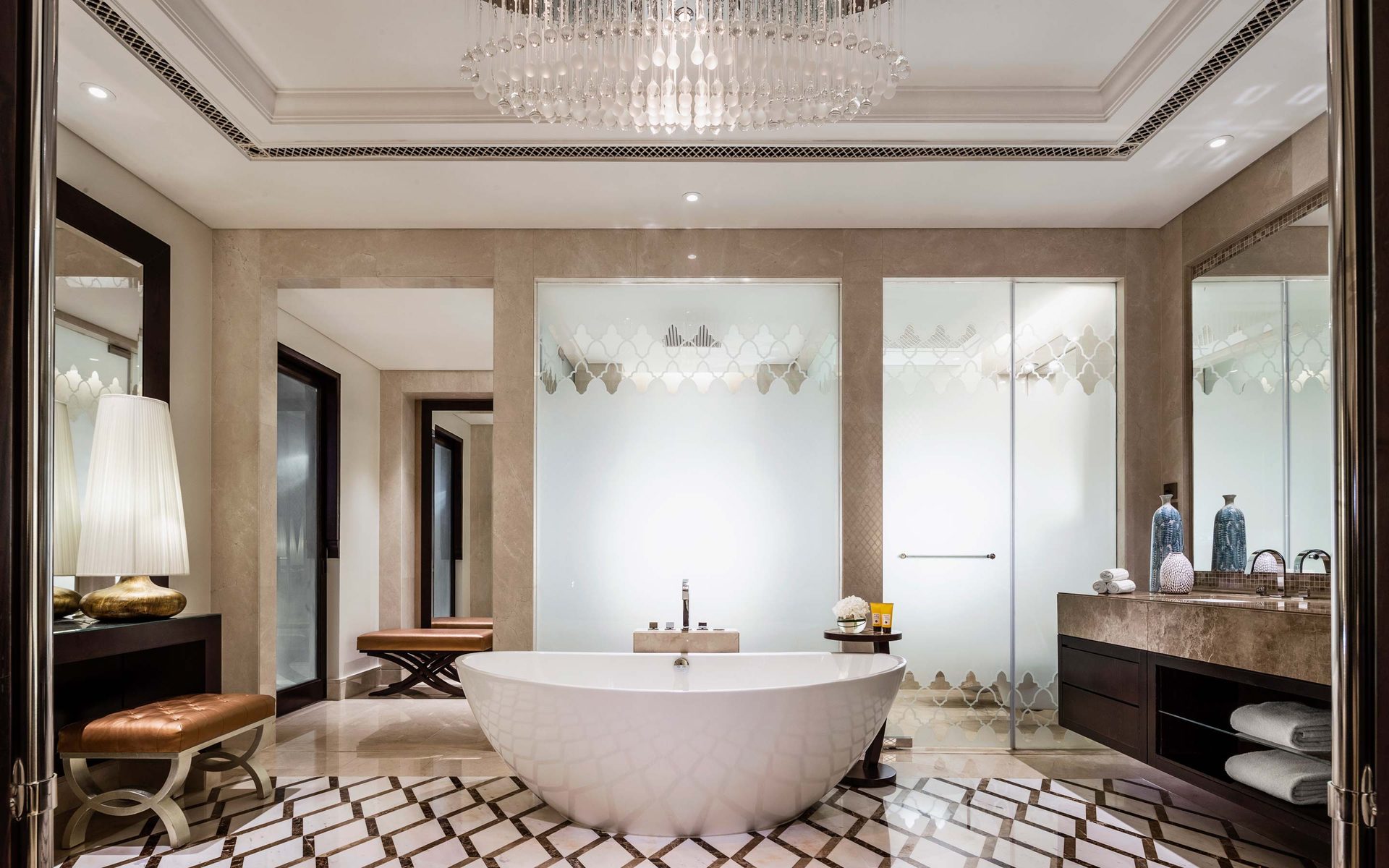Номера в One&Only The Palm отличаются утонченной изысканностью и комфортом. При оформлении их интерьеров были использованы мавританский и андалузский стили с традиционными арабскими акцентами в виде резных перегородок, фигурных арок, узоров из мозаики и аутентичных арабесок.