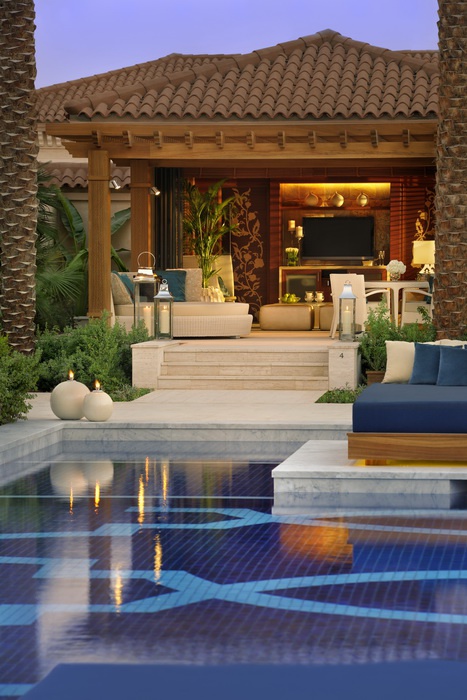 Two Bedroom Beachfront Villa –это комплекс из четырех отдельно стоящих вилл с роскошным оформлением в традиционном арабском стиле и возможностью полного уединения.