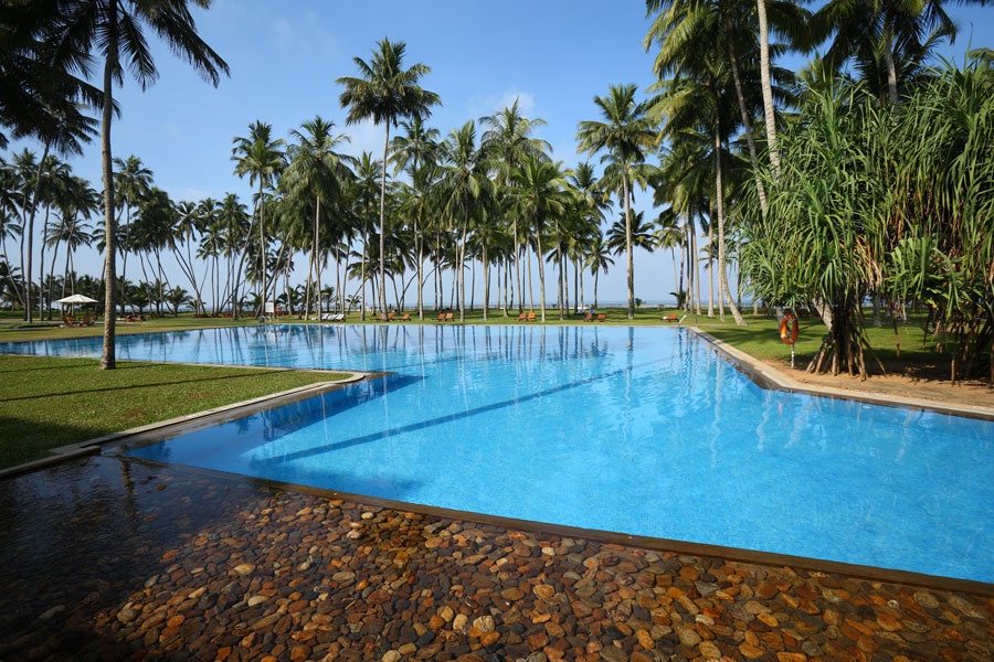 Привлекательный дизайн Джеффри Бавы, известного архитектора Шри-Ланки, и безупречный сервис – это то, что делает отель The Blue Water великолепным местом для неспешного и роскошного отдыха. Отель располагает одним из лучших ресторанов на острове, просторным бассейном. Изюминка отеля – великолепный SPA-центр. Красивейшие большие номера выполнены в светлых оттенках и обставлены мебелью в классическом стиле. Дизайн номеров дополнен традиционными шри-ланкийскими узорами, которые прослеживаются в произведениях искусства и элементах декора. Из номеров отеля открывается захватывающий вид на океан, что сделает незабываемым ваш отдых на Шри-Ланке.