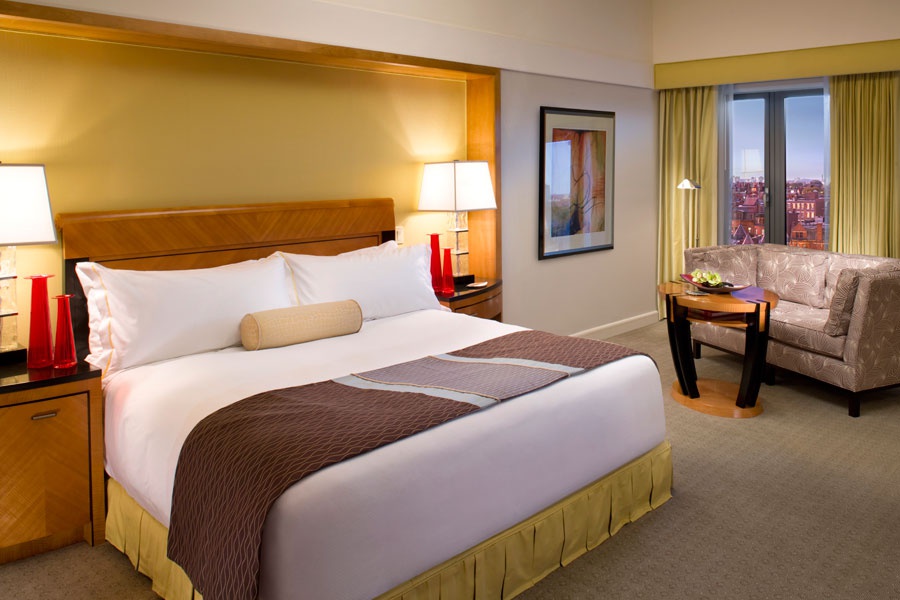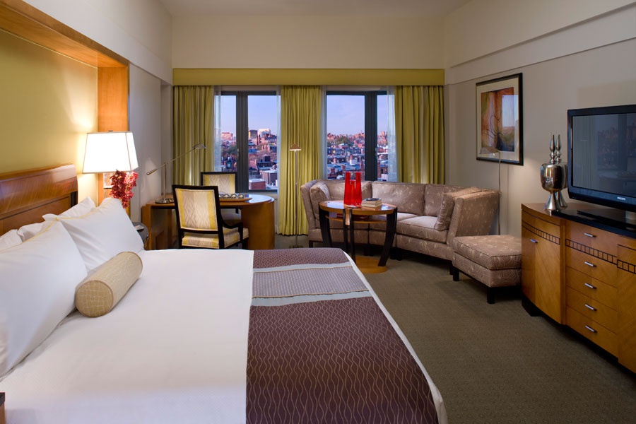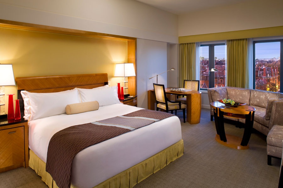 Deluxe Room: 38 м2. Расположен с 5 по 9 этажи, состоит из спальни с кроватью king-size и зоной отдыха, ванной комнаты, выходит на Back Bay, Boylston Street или во внутренний двор отеля.