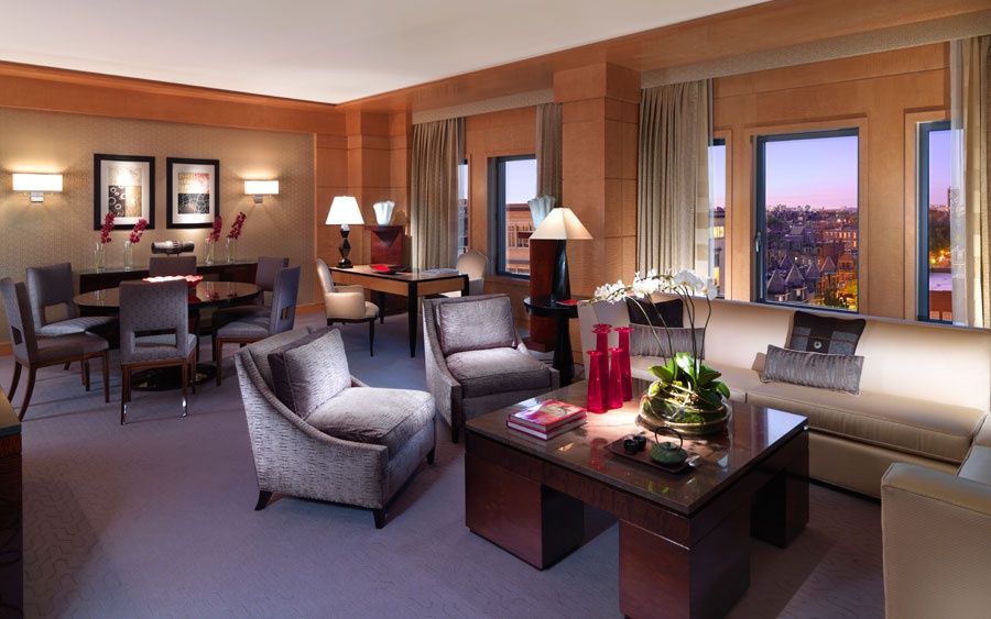 Executive Suite: 97 м2. Расположен с 6 по 8 этажи, состоит из спальни с кроватью king-size и двумя эркерными окнами, гостиной, ванной комнаты, выходит на Boylston Street. Может соединяться с Mandarin Back Bay Room.