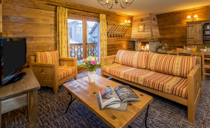 Эти уютные двухуровневые апартаменты площадью 160 м² с собственной сауной вмещают до 14 человек. Расслабьтесь перед каменным камином в традиционной савойской атмосфере.