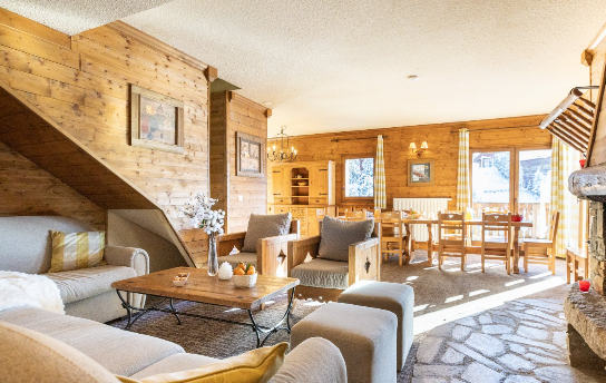 Эти уютные апартаменты площадью 140 м² вмещают до 12 человек. Расслабьтесь перед каменным камином в традиционной савойской атмосфере.
