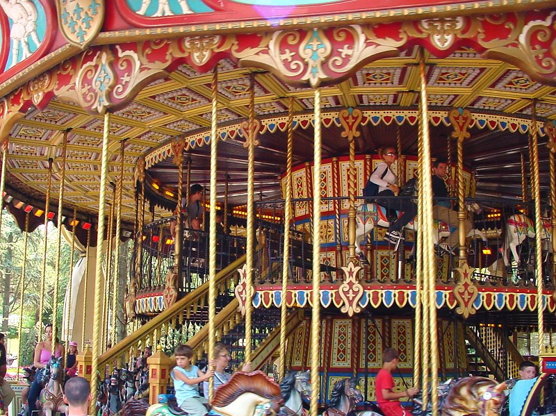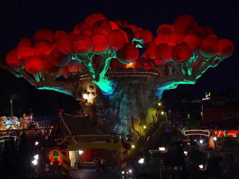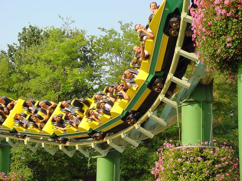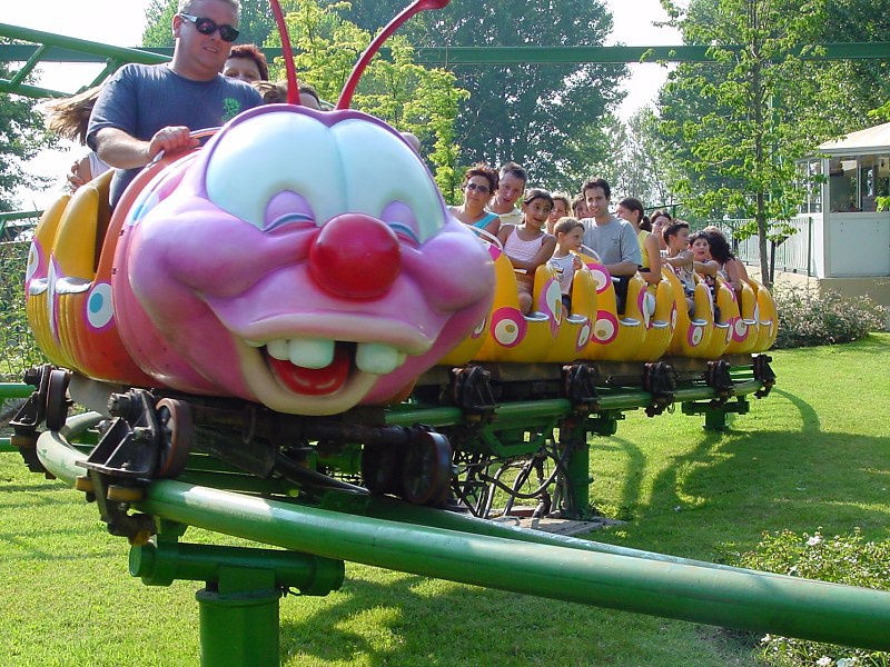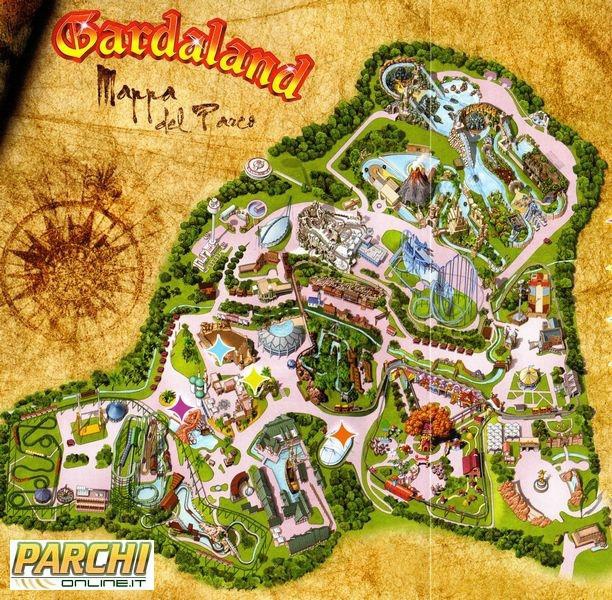 Начиная свой личный путь по лучшему парку развлечений в Италии, сразу отмечаешь, что Гардаленд очень зеленое место и вполне по количеству разнообразных деревьев мог бы претендовать на звание ботанического сада. И это еще и добавляет комфорта - в полуденное итальянское пекло ты всегда можешь спрятаться в прохладной тени. Развлечения на бумажном плане пронумерованы и сгруппированы по четырем основным цветовым группам 16 красных "фэнтези" (сюда включены и вышеупомянутые обзорные круизы "Трансгардиан экспресс" и канатка "Панорамик тур") и прочее помельче тематические "путешествия" в вагонетках, разнообразных лодках и корабликах, самолетиках и т. д. и т. п. Для малышей в парке развлечений Гардаленд в Италии есть интересный и красочный район Kingdom, где поют и развлекают, застывают в смешных позах всевозможные поросята, гуси, коровы и другая живность. А также павильоны с само за себя говорящими названиями "Питер Пэн", "Супербейби", "Games Area", "Видеоигры и симуляторы".