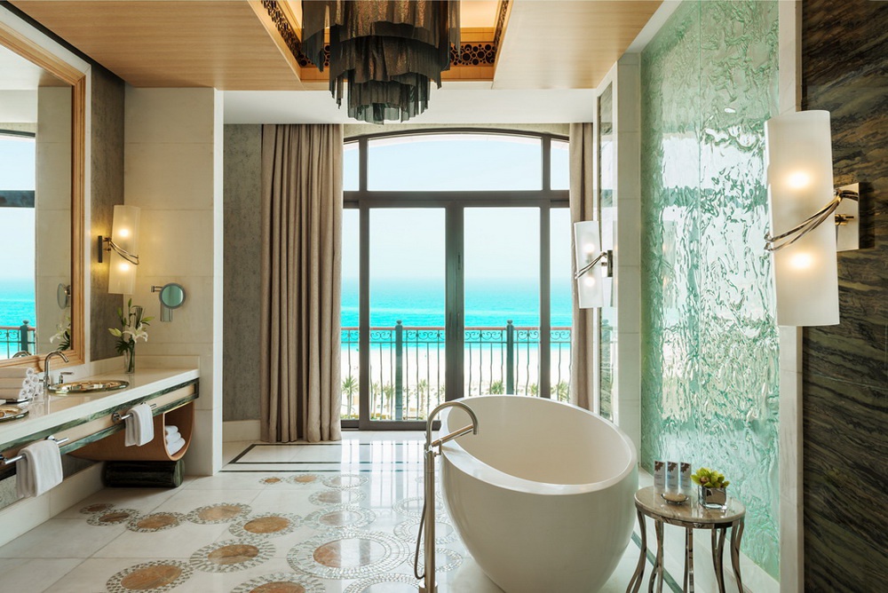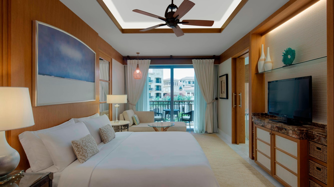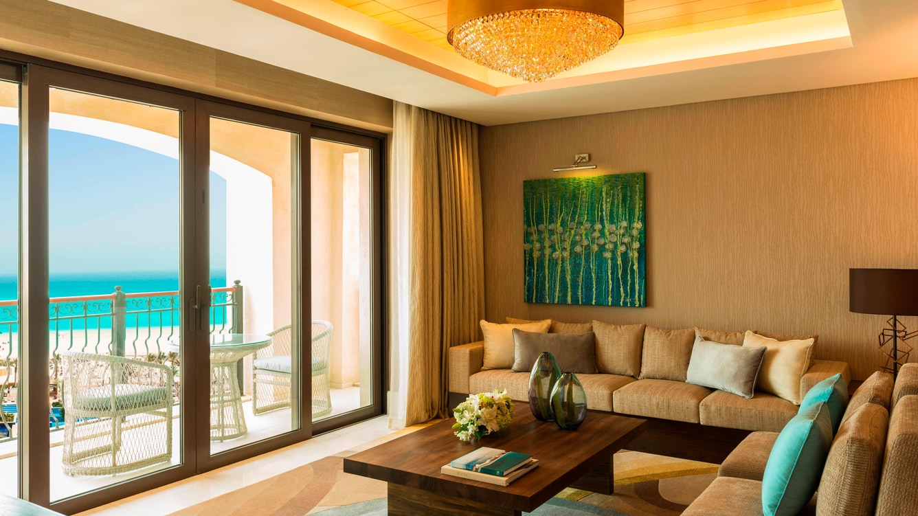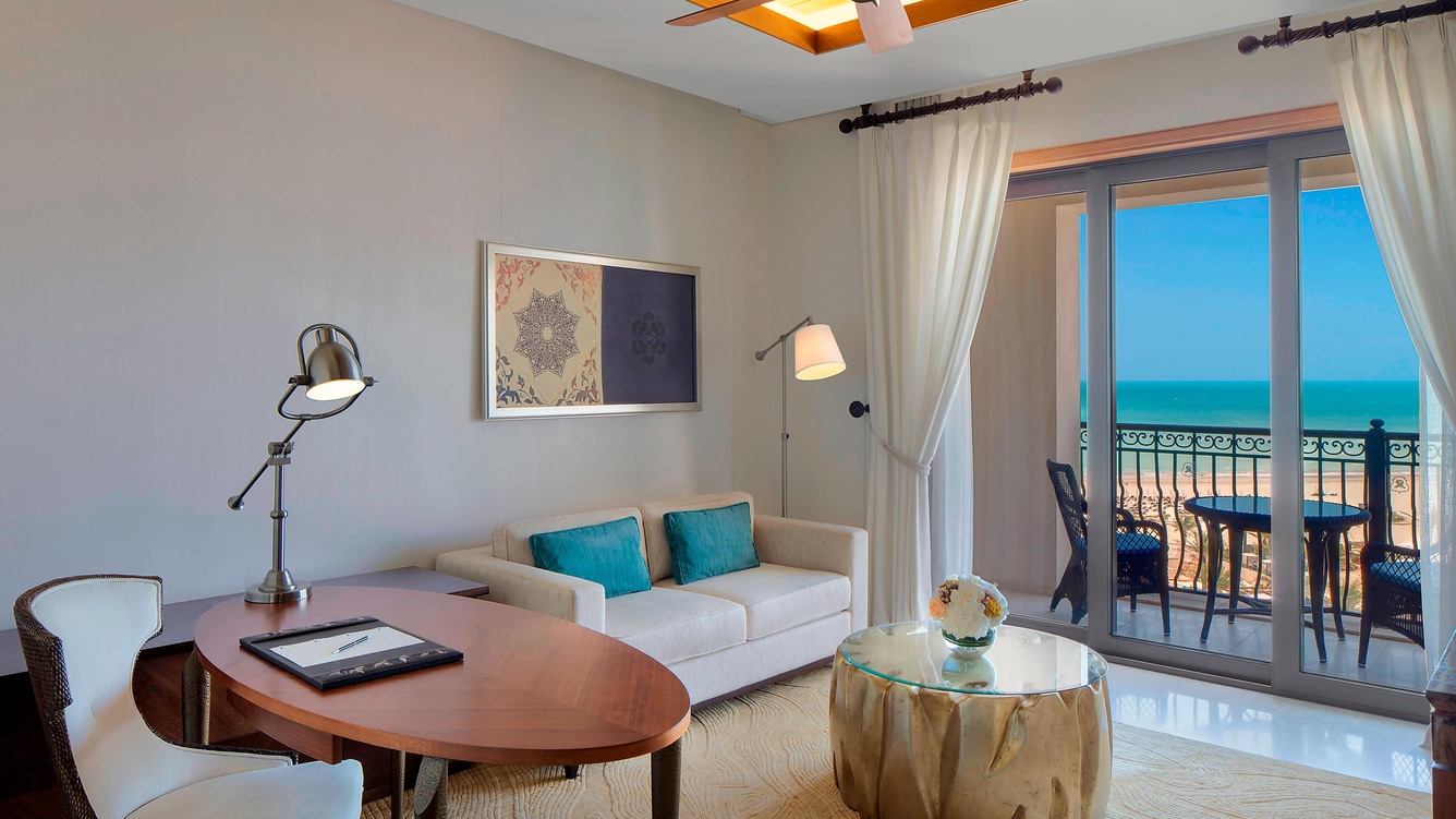 В отеле 377 номеров различных категорий. Номера выполнены в элегантном современном стиле с элементами арабского декора и отделаны первоклассными натуральными материалами. С балконов открываются чудесные виды на белоснежную полосу пляжей и лазурный Персидский залив, или на живописное поле для гольфа. Дополнительная кровать ставится только в номера с кроватью king-size.