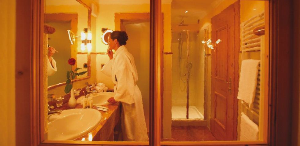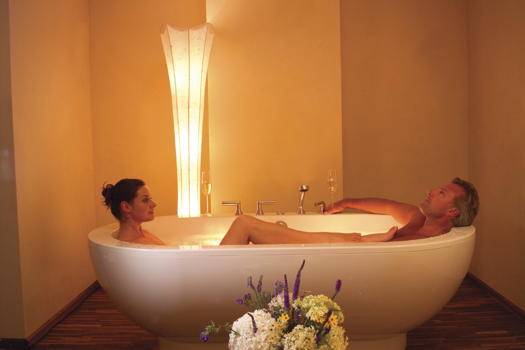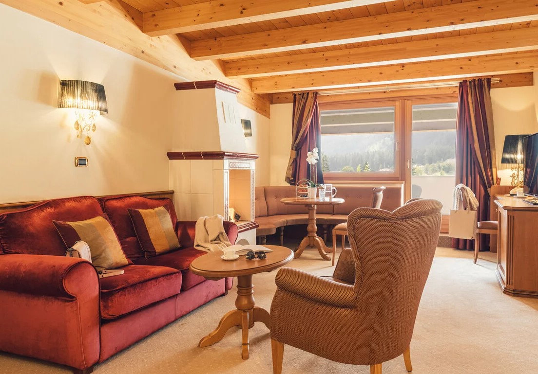Люкс с личным спа — это двухкомнатные апартаменты. Их площадь составляет 55 кв. м., и они являются «апартаментами для хорошего самочувствия» в нашем Luxury Hideaway & Spa Retreat с собственной паровой комнатой. Private Spa Suites, начиная с выбранных цветов, мебели и заканчивая зоной ванны, спроектированы с учетом заботы о теле и благополучии духа. Все Private Spa Suites имеют изразцовую печь, балкон с прекрасным панорамным видом на Альпы и расположены на третьем этаже. Ванная комната: паровая баня, душ, джакузи, ванна-телевизор, отдельный туалет, биде.
