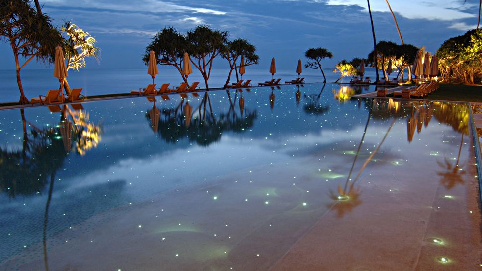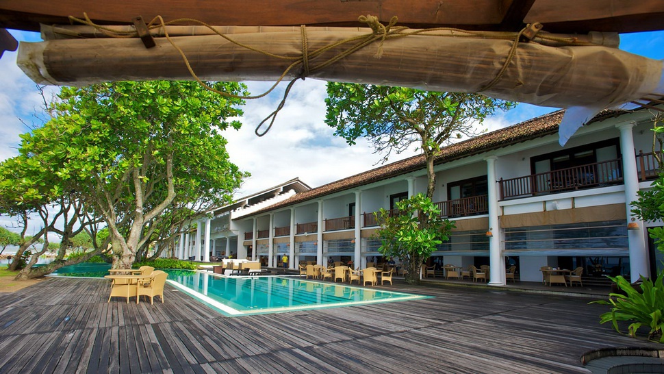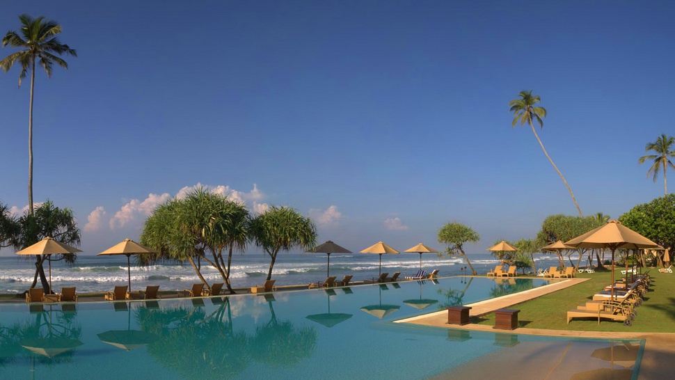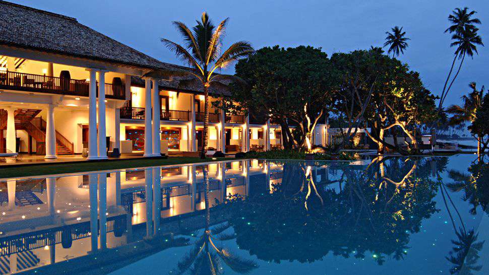 Номера восхищают элегантным декором, новейшим техническим оснащением и комфортом, огромный бассейн-лагуна окружен пышной зеленью сада и тенистым деревьями, прекрасно оборудованный СПА центр предлагает разнообразие процедур, основанных на древних аюрведических методиках, рестораны и бары представляют деликатесы Шри-Ланки, Азии и международной кухни, а также экзотические коктейли и лучшие сорта знаменитого цейлонского чая, а в винном погребе хранится богатая коллекция вин со всего света.