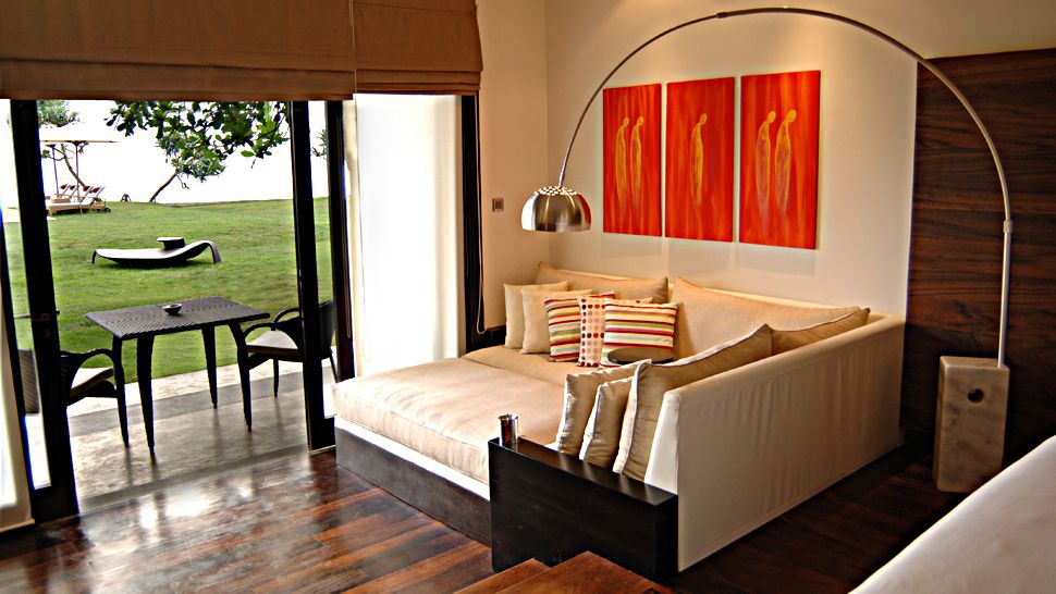 Beach Room: расположен на 1 этаже, состоит из спальни, ванной комнаты открытого плана с джакузи, террасы с видом на сады.