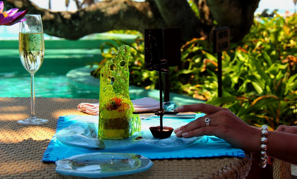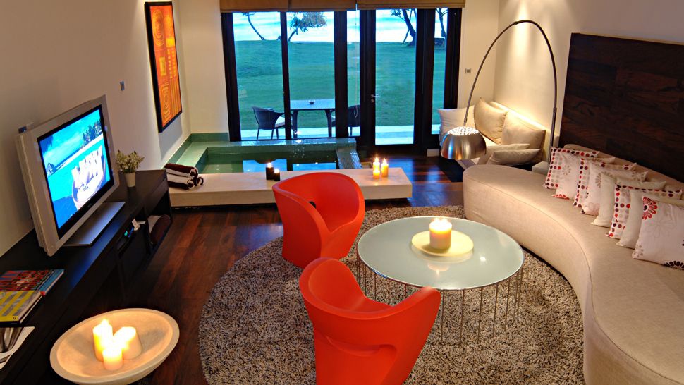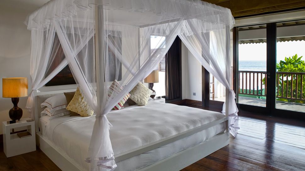 Ocean Room: расположен на 2 этаже, спальни на возвышении, зоны отдыха, ванной комнаты открытого плана с джакузи, балкона с видом на океан и сады.